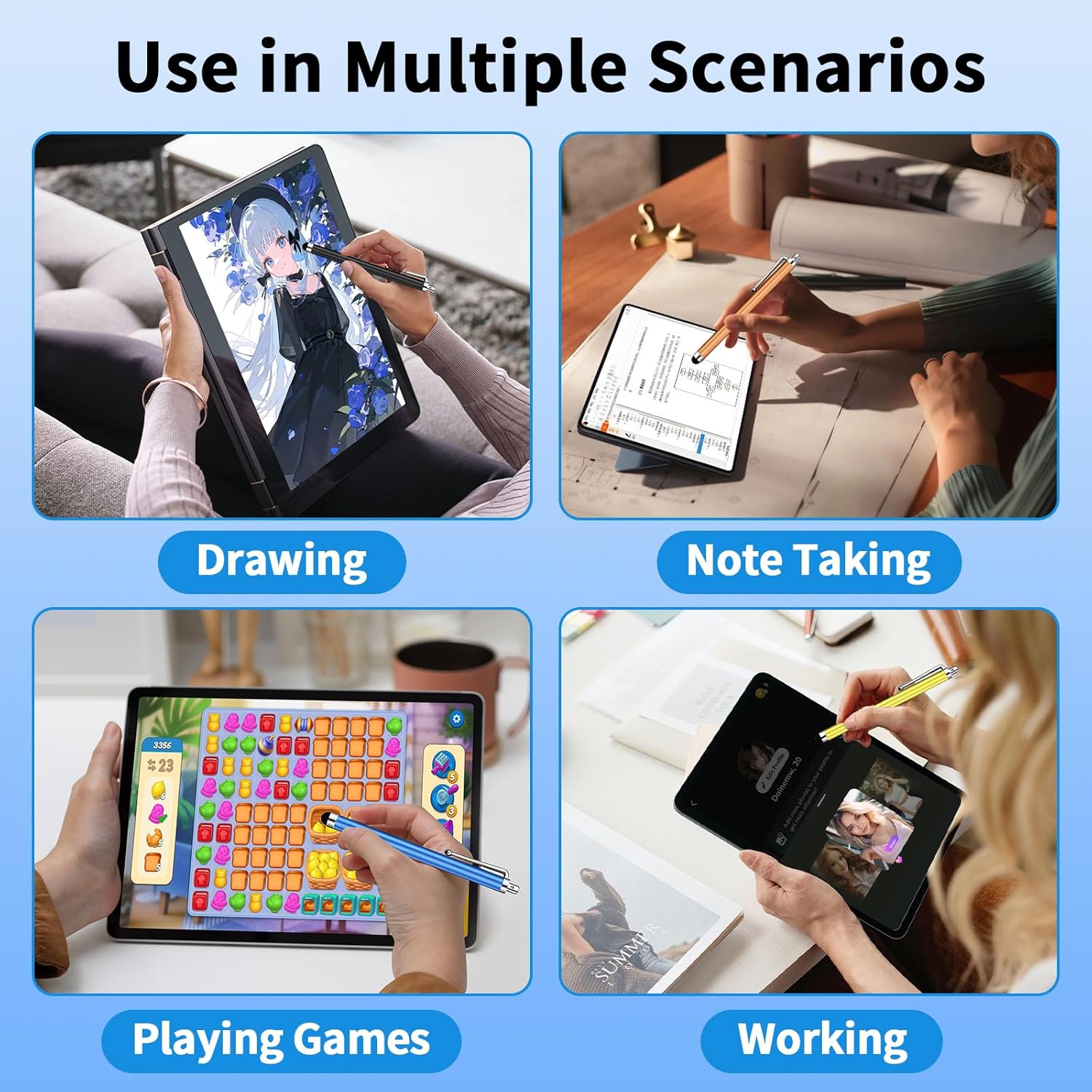 Precision Touch: The stylus is a rubber pen tip, which can provide a more accurate touch experience than the finger. Say goodbye to your fingers to touch and inadequate operations, and enjoy a smoother and efficient touch experience. Whether in work, study, or entertainment, this stylus pen can easily cope with various scenarios and improve use efficiency.