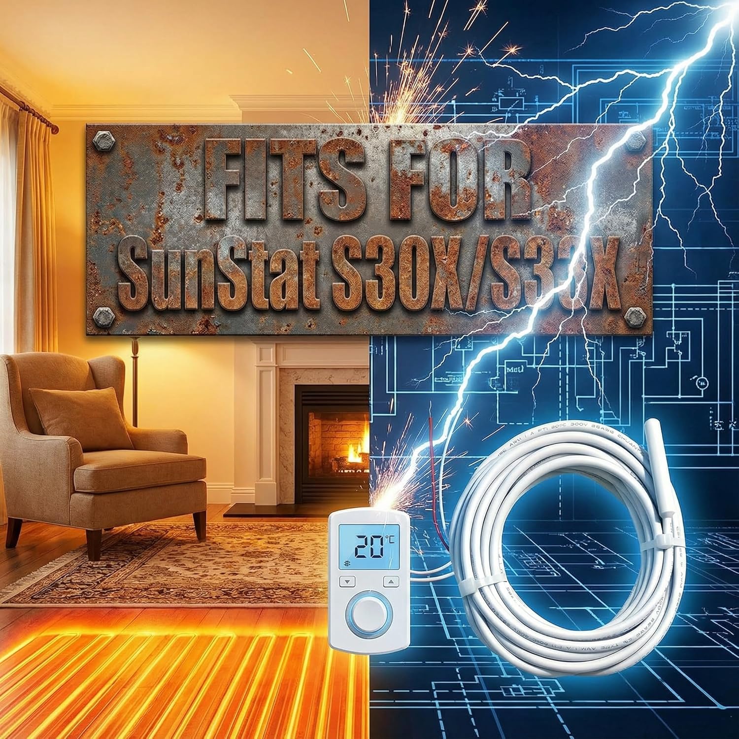 Precise Control & Safety Features: The 10K NTC thermistor provides precise floor temperature detection, compatible with SunStat SmartStart technology to auto-adjust heating cycles for consistent comfort. Its double-insulated design offers extra electrical safety, meeting residential and commercial standards. Prior to installation, measure resistance (close to 10KΩ) to ensure the insulated floor heating sensor is undamaged