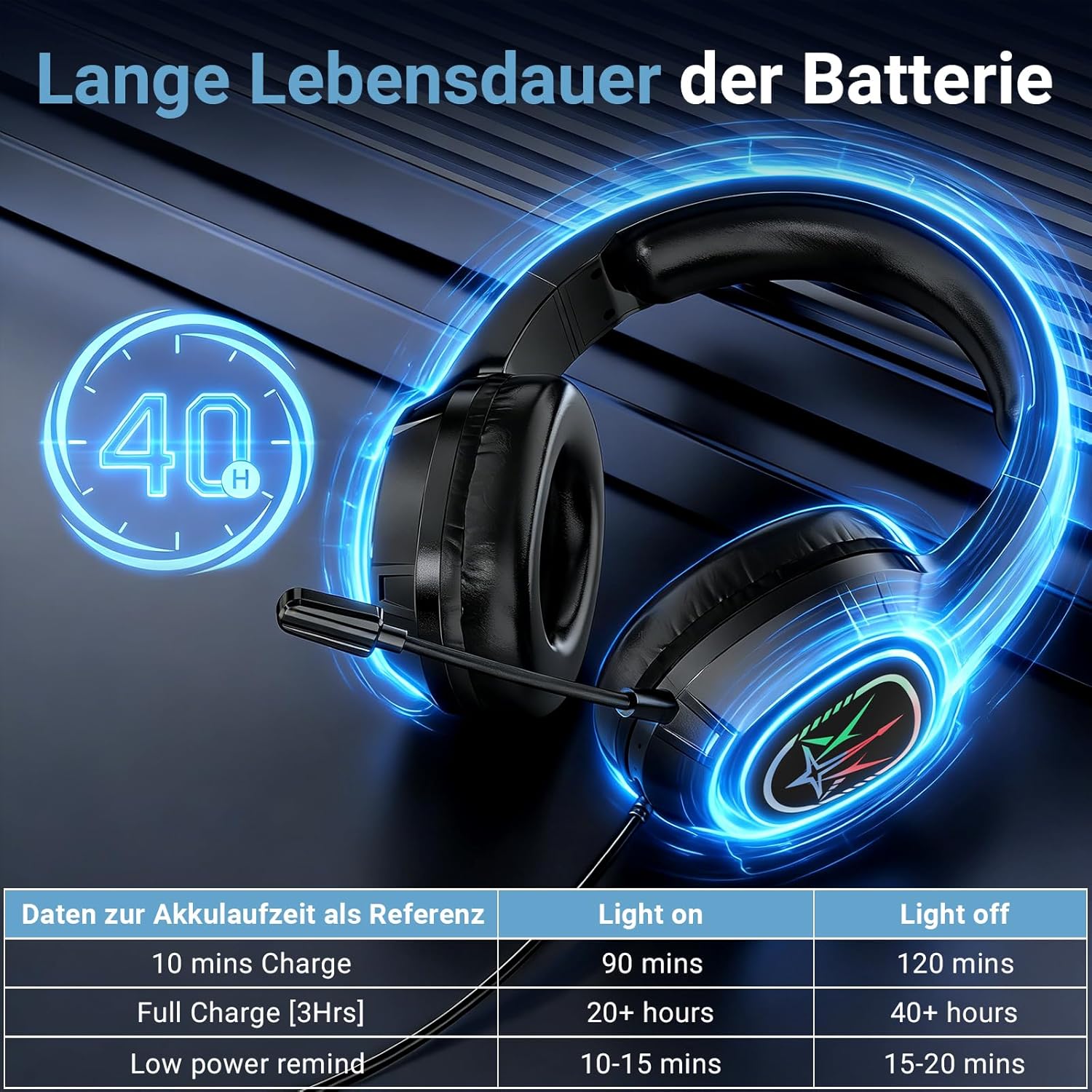 2.4GHz Wireless Gaming Headset for PC,Ps4, Ps5-Lossless Audio USB & Type-C,Wired Connection Supported,7.1 Surround Sound,40-Hour Battery, LED Light Over Bluetooth 5.3 Gaming Headphones-Black