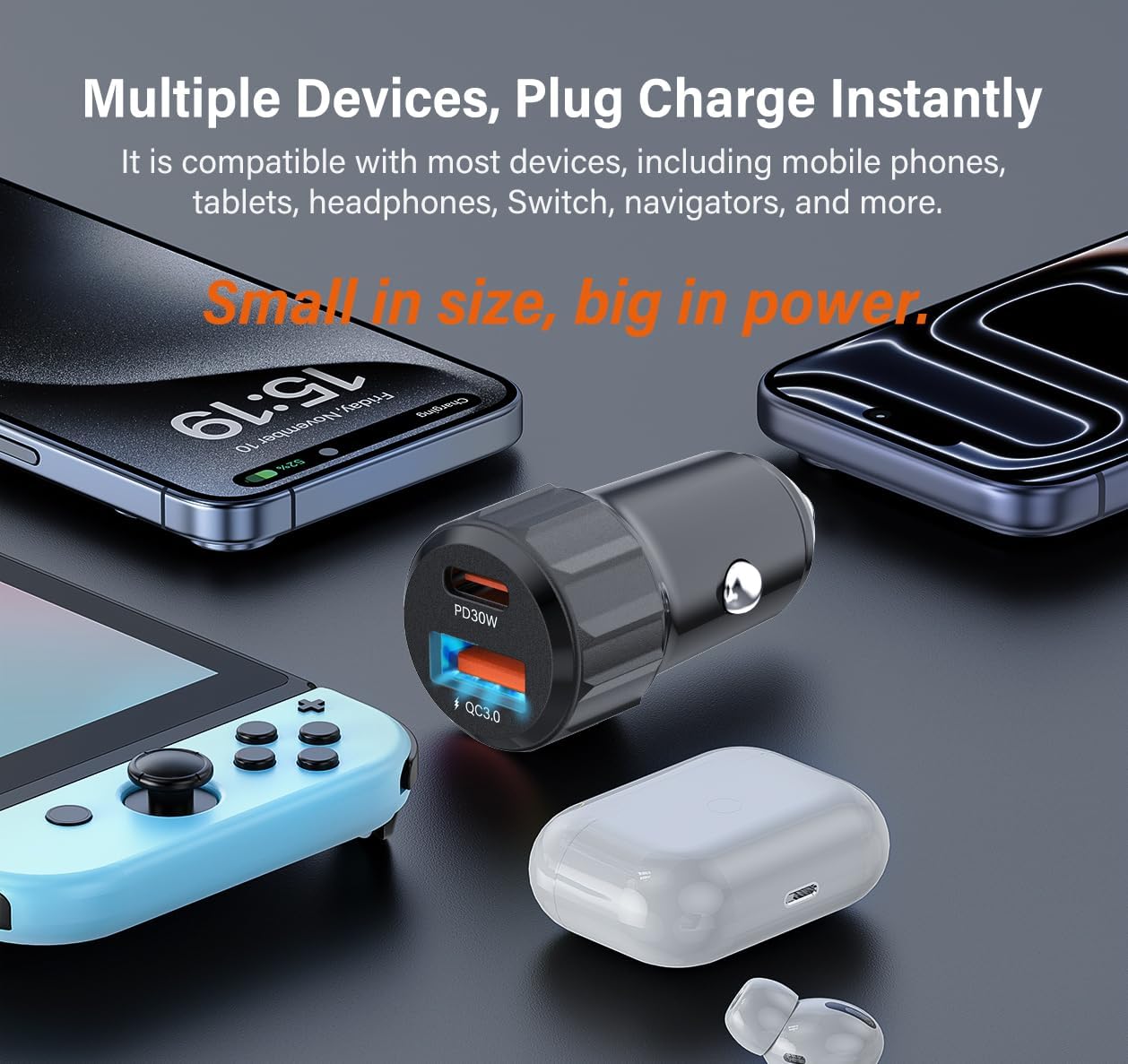 【Professional Cell Phone Automobile Chargers】 This car charger adapter is built with high-quality engineered materials. It supports PD 3.0 & QC 3.0 protocols, making it the most reliable iphone car charger and Android charging solution for your daily commute or long-distance travel.