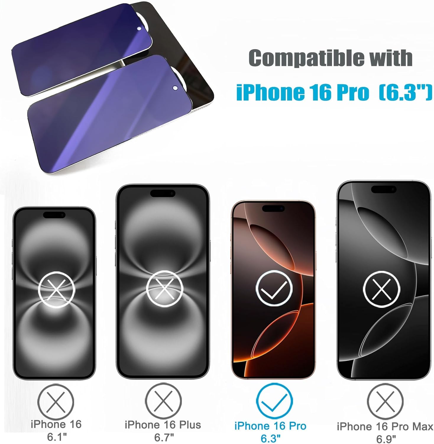 [Highly Efficient Privacy Protection]: This privacy tempered glass screen protector for iPhone 16 Pro is only visible to the user directly in front of the screen, invisible to people on the left an right, efficiently protects your personal private information from strangers around and doesn’t effect your view of the screen.