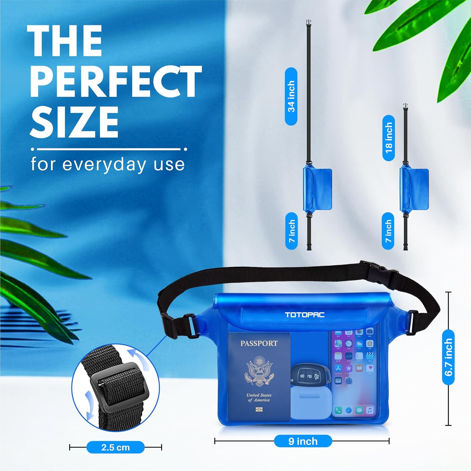 2-Pack Waterproof Fanny Pack, Phone Pouch with Waist Strap, 9×6.7 Inch Dry Bag for Phone, Cash, and Valuables – for Swimming, Kayaking, Boating, Snorkeling, and Water Sports (2, Blue + Blue)