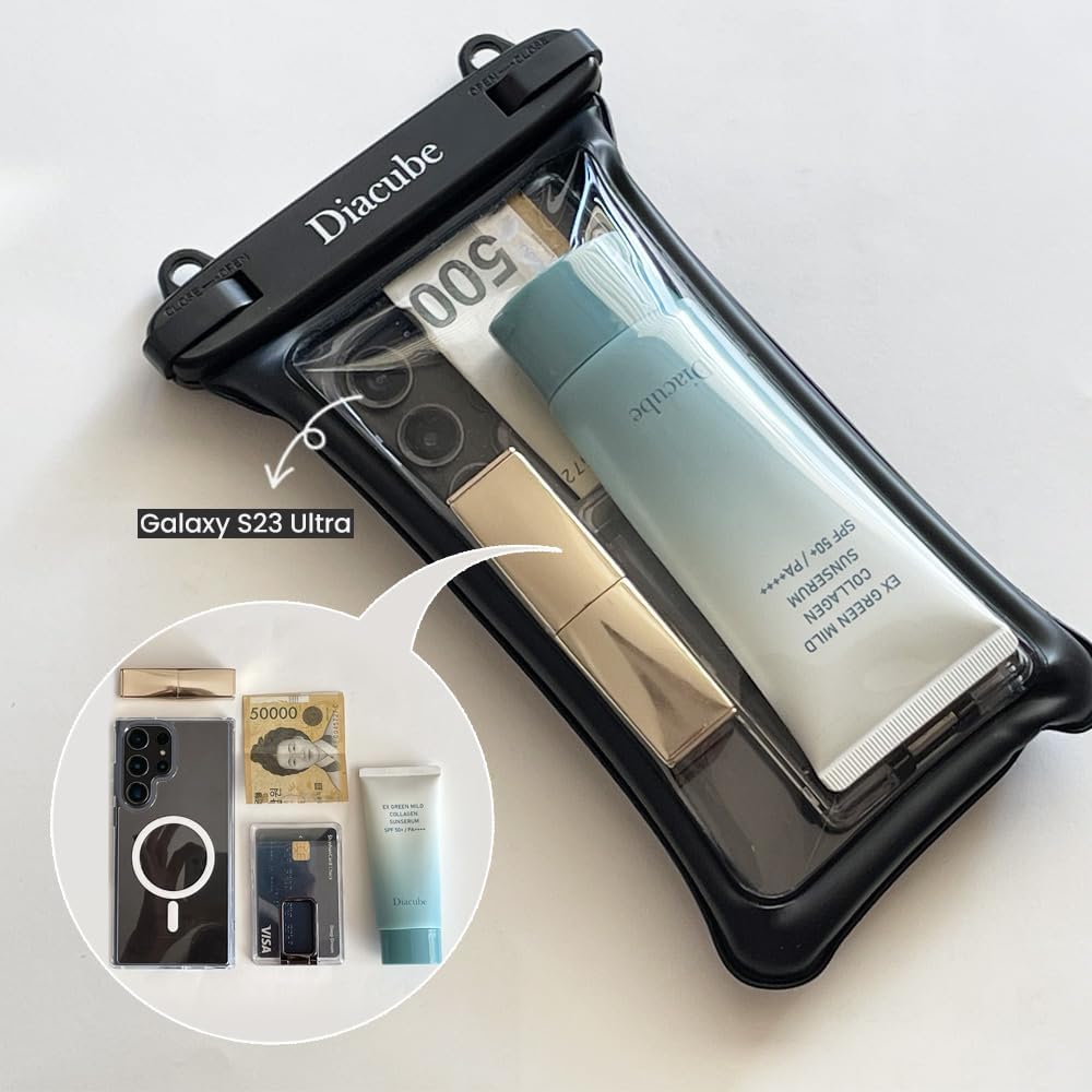 【ULTIMATE IPX8 CERTIFIED WATERPROOF DEFENSE】DIACUBE’s advanced three-layer lock-down technology provides reliable IPX8 waterproofing, safeguarding your phone from water, snow, dust, and sand. Keep important items like passports, bank cards, cruise cards, cash, IDs, and your phone safe and dry inside this waterproof pouch.