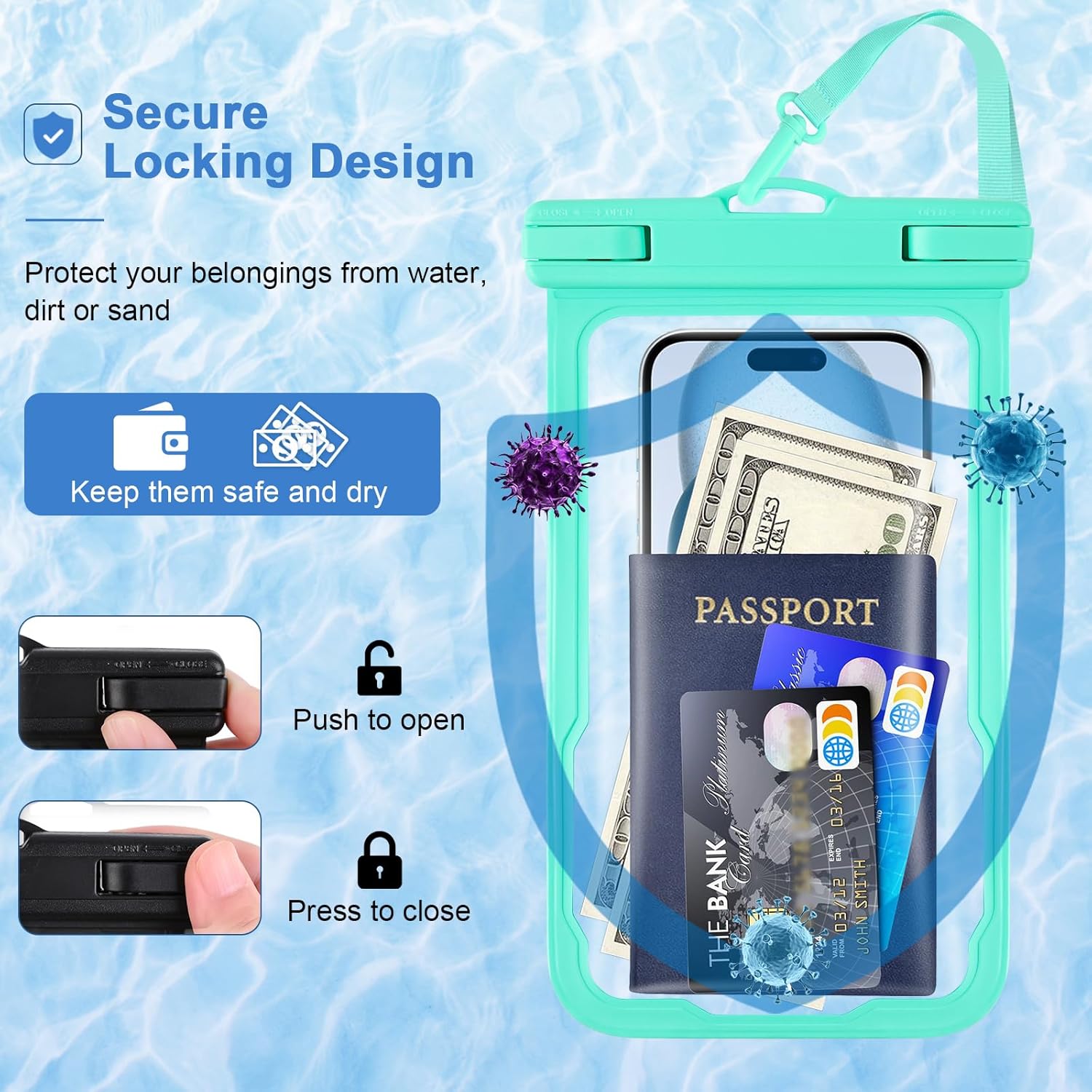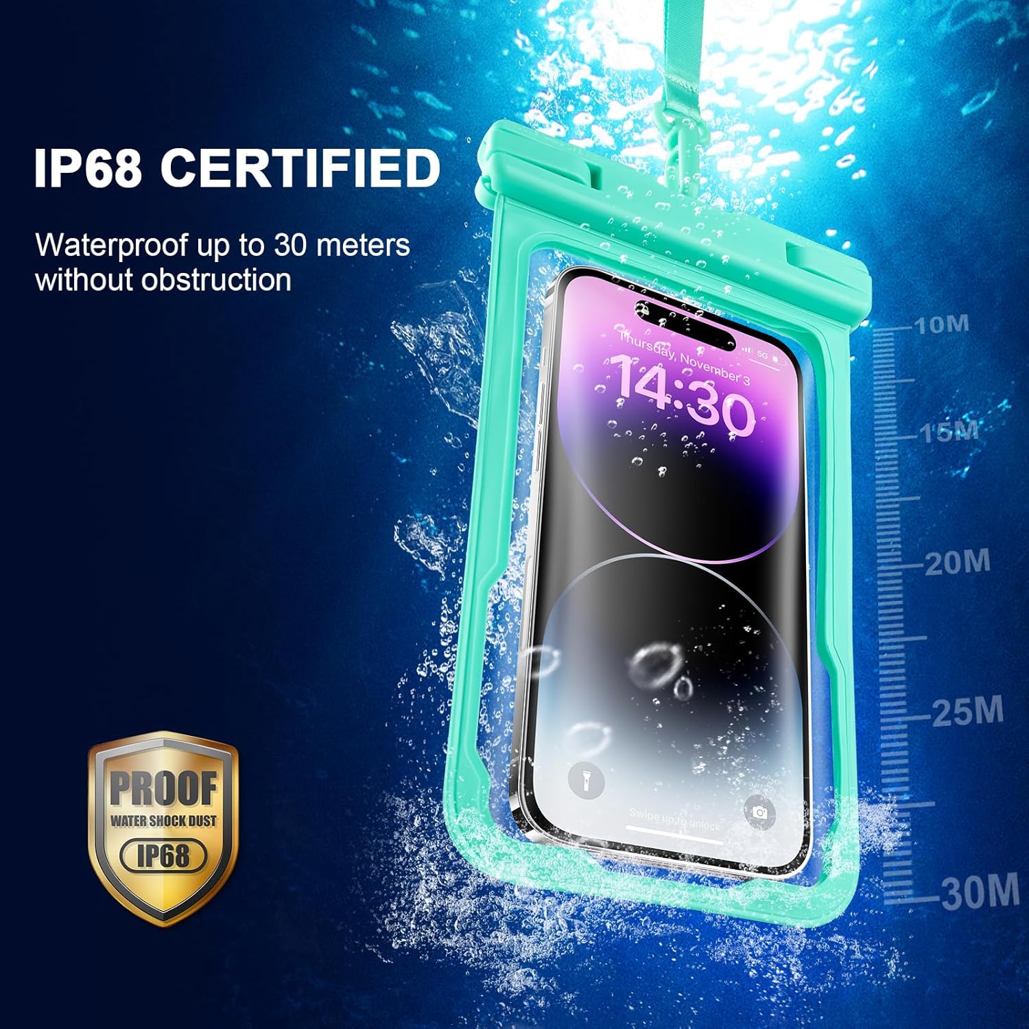 IPX8 Waterproof Phone Pouch: Waterproof Cellphone dry bag is IPX8 waterproof / Snow-proof / Dirt-proof, No more water or sweat damage to your phone, it was perfect for keeping items dry and safe from any moisture or water. Whether you’re at the beach, enjoying water sports, or caught in the rain, our waterproof phone bag provides ultimate protection for your valuable device