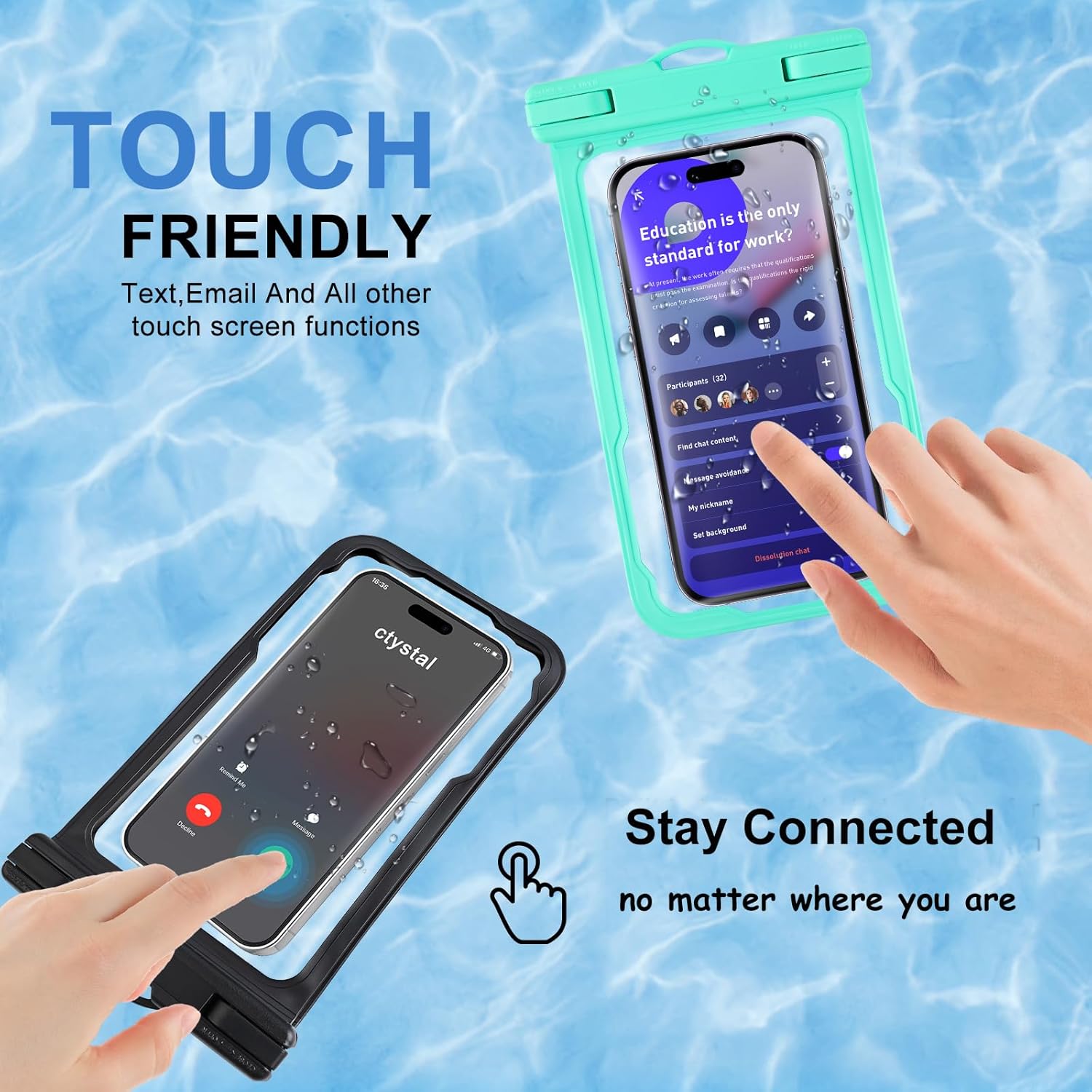 Screen Touch: Waterproof phone pouch made from high-quality PVC material. With its dual-sided fully transparent design, you can enjoy delicate touch and quick response, making it convenient for taking pictures, answering calls, sending messages, watching videos, checking emails, and even using face recognition. Stay connected and capture every precious memory, no matter where you are