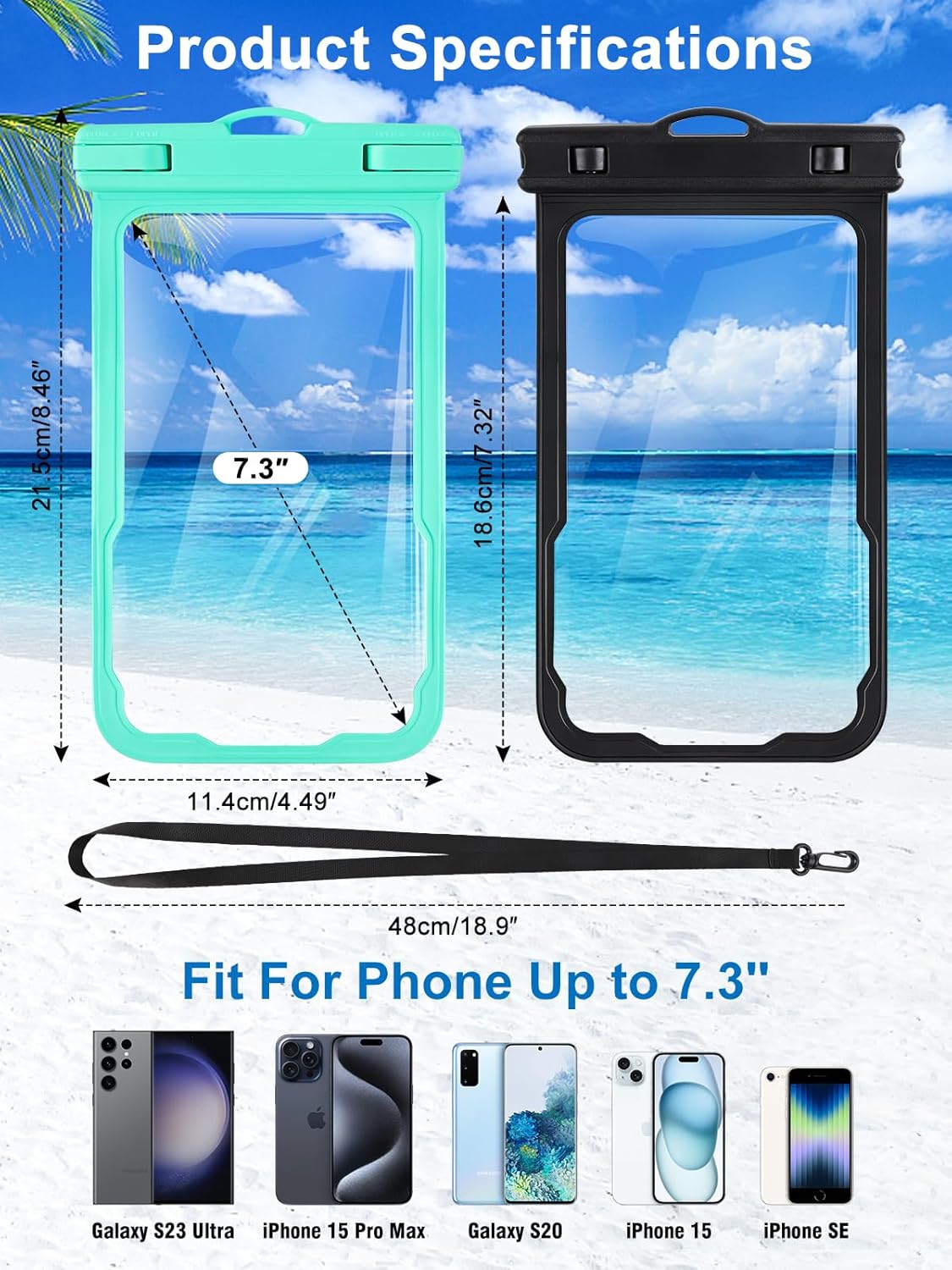 2 Pcs Waterproof Phone Pouch, Universal Waterproof Phone Case for iPhone Samsung Google Up to 7.3”, IPX8 Water Proof Cellphone Dry Bag for Snorkeling Swimming Beach Kayak Cruise Essentials