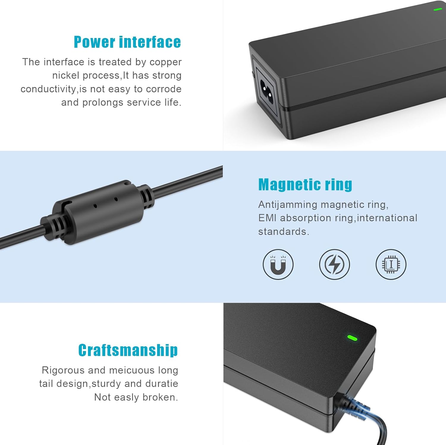 The long-tail design with rigorous and meticulous craftsmanship, 10000+ power cord bending resistance, is durable and not easy to break