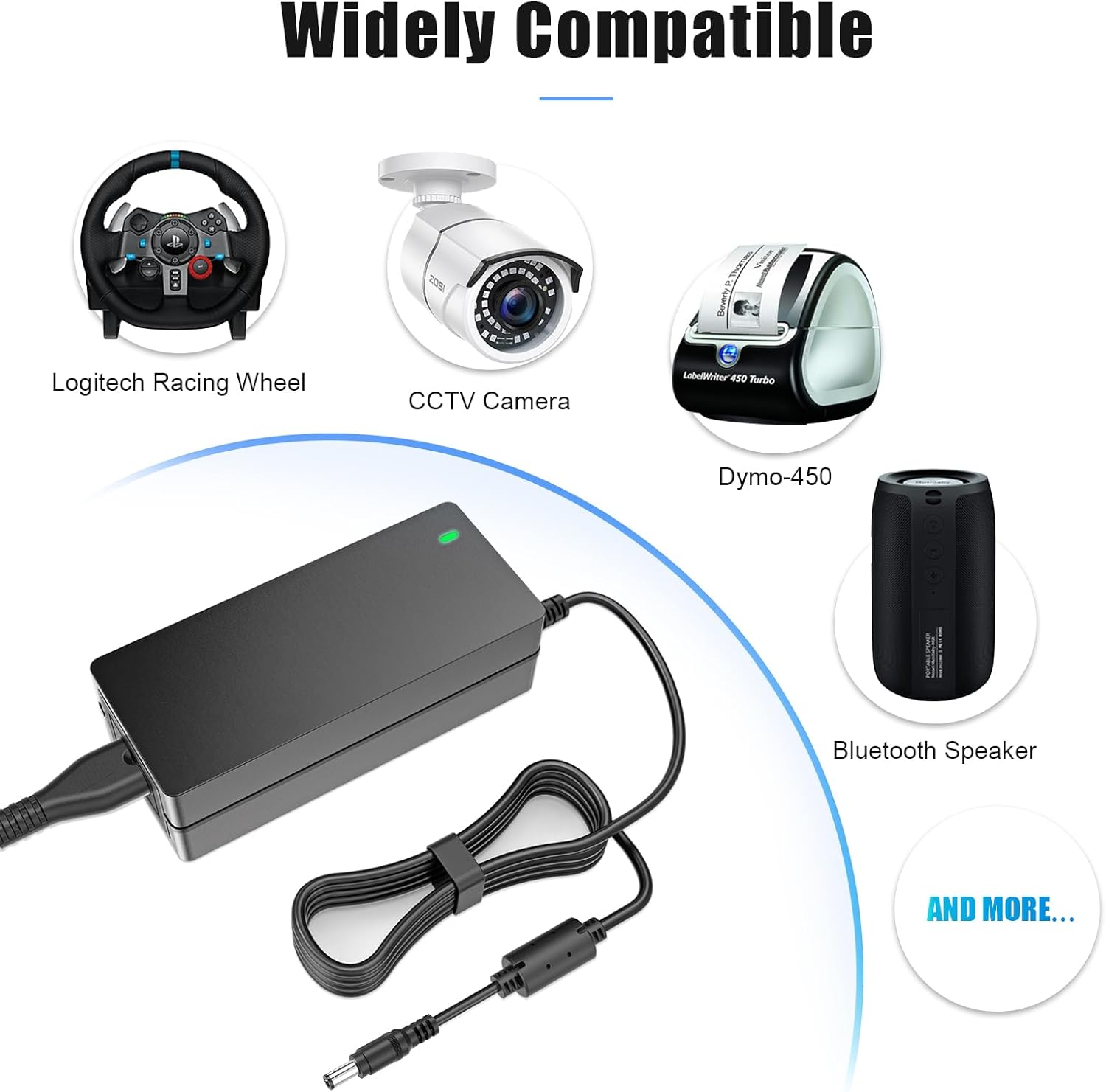 [ 24Vdc Power Supply WIDE RANGE OF APPLICATIONS: ] for 24V 0-2.5A Electronic devices, Such as LED Strip Light, Light string, LED Driver, Printer, Electronic cutting tool, portable speakers, Polk and Vivzo soundbar etc, CCTV Security System, 3D printer, Humidifier, Atomizer sweeper, Water purifier, LED LCD monitor, Soldering iron, Constant current drivers, Rachio sprinkler, Security cameras, DVR NVR surveillance system, Mobile hard disk, Medical machinery, Computer speakers, Digital photo frame, Industrial equipment etc.