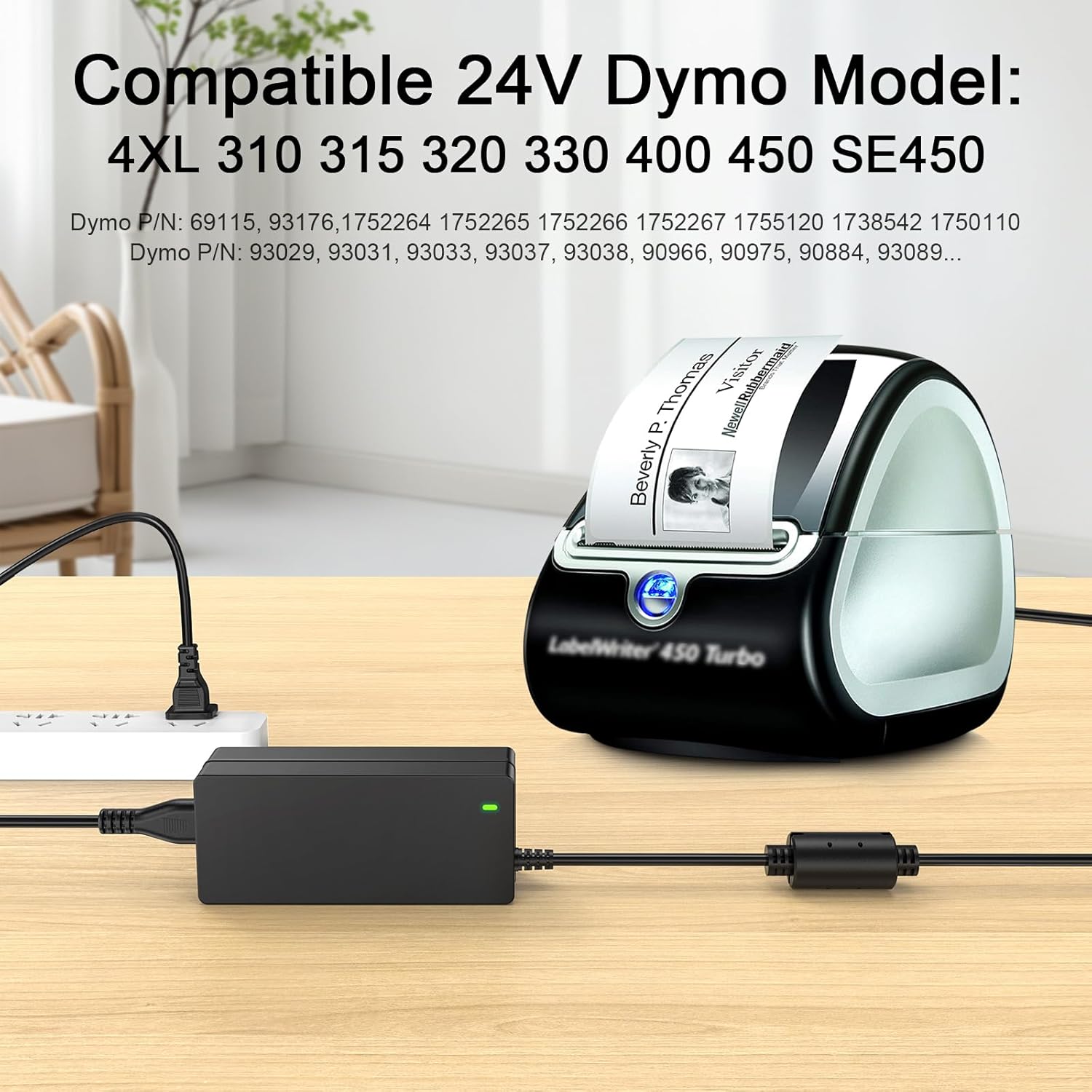 [ 24V for dymo Power Supply Compatible with: ] for Dymo 400 450 4XL 550 5XL 310 315 320 330 450SE Label Thermal / Twin Turbo / Turbo Labels Printer / Duo Printer / LabelWriter Printer Replacement Power Cord Adapter, P/N: 1752266 1752265 1752264 1755120 93447 993447 153434 93176 93089 69115 1752267 LW320 68075 90795 S3036 90819 71701 Z36983; DSA-0421S-24 2 24 DSA-04215-24 DVE DSA-0421S-24 2 42 DSA-04215-24224 DSA-0421S-242 DSA-65W-2 24060 SA165A-2425V-3 924883 DVE; TEAD-48-240600U TESA2-2401000; ESA22401000