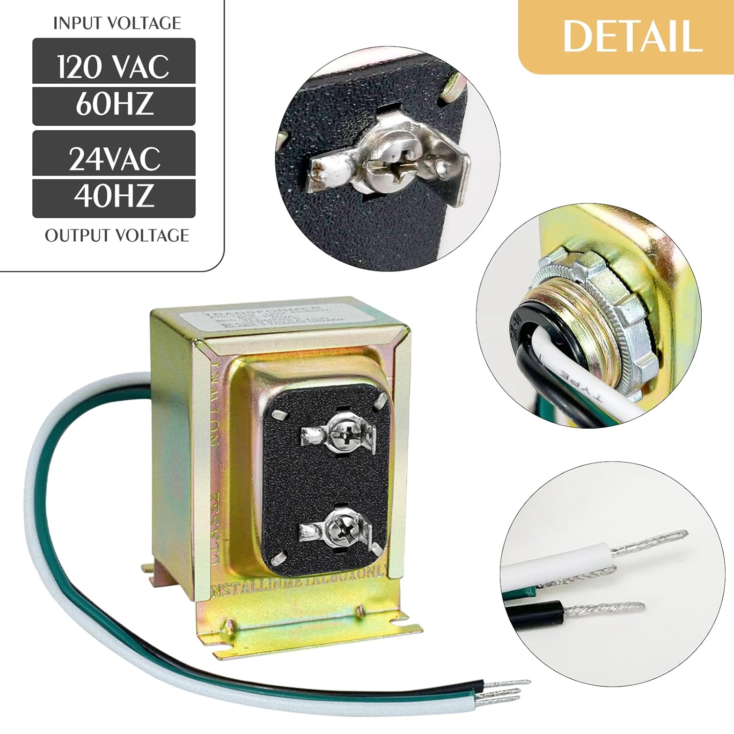 Reliable Performance: With an input of 120V AC 60 Hz and an output of 24V AC at 40VA, this low-voltage transformer offers reliable and stable power supply. It is designed for residential, commercial, and industrial use, providing safe and consistent performance for multiple thermostats and doorbells simultaneously. Ideal for upgrading or replacing underpowered transformers