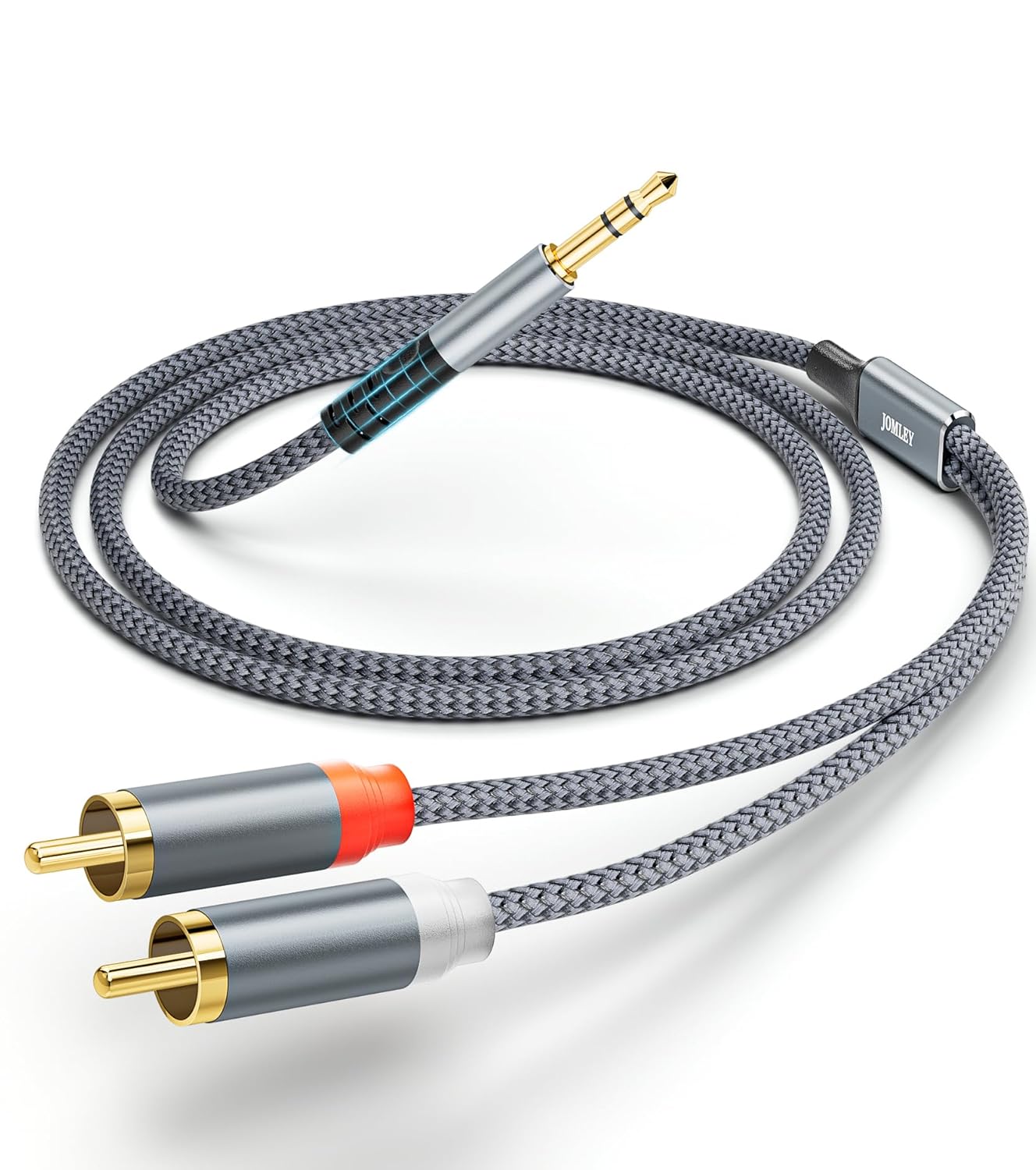 JOMLEY 3.5 mm to 2 RCA Audio Aux Stereo Y-Splitter Cable, 1/8-inch AUX to RCA Audio Adapter, Hi-Fi Sound Headphone Jack Adapter, Metal Shell RCA Splitter for Cell Phones, Speakers, Tablets, HDTVs