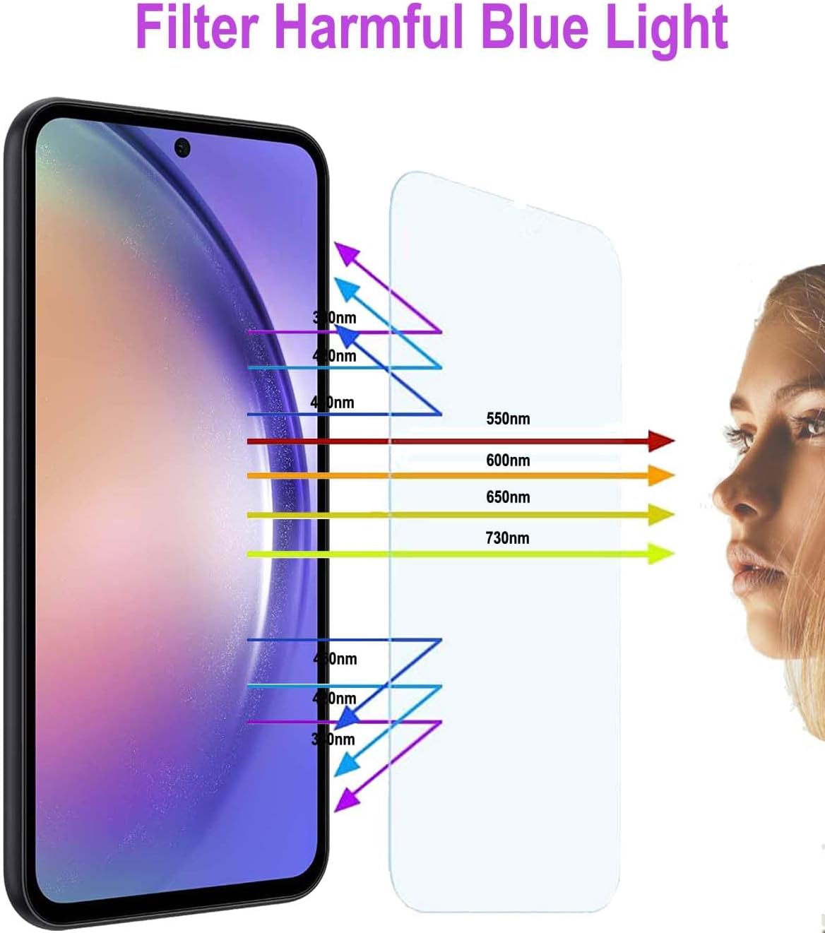 【Blue Light Filtering】Samsung Galaxy A54 glass screen protector uses anti-blue light material, removing your phone screen’s blue light to effectively protect your eyes from ocular damage and visual fatigue. Keeps your eyes healthier from staring at the screen for long periods of time.