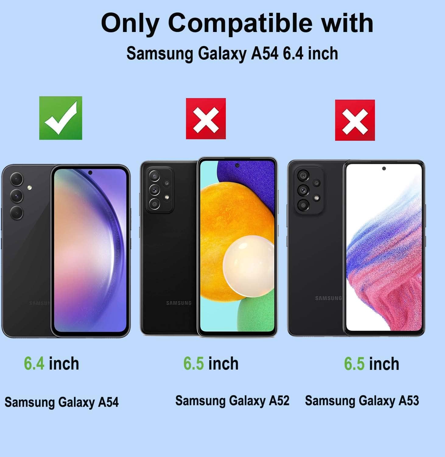 【Compatible Models】 Exclusively Designed for Samsung Galaxy A54 6.4 inch only (Not for any other models), Please confirm the phone model before purchase.Include 3 pack Samsung Galaxy A54 Anti Blue Light Tempered Glass Screen Protector.