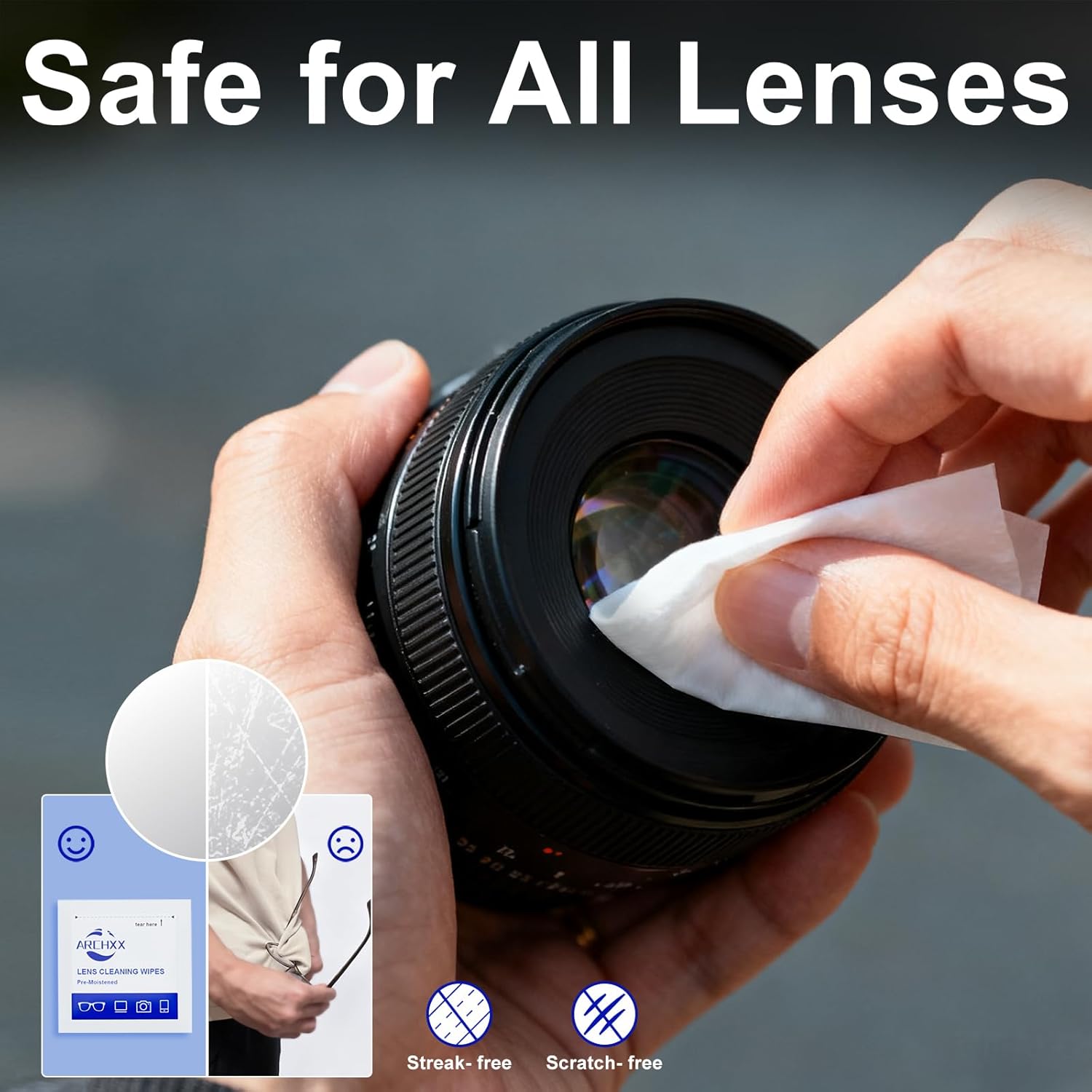 【Streak‑Free, Scratch‑Free】Quick‑drying, lint‑free lens wipes clean eyeglass lenses, phones, and cameras without streaks or residue. Each wipe serves as eye glass cleaner wipes, a dependable eyeglass cleaner wipes option, and a handy eye glass wipes pick