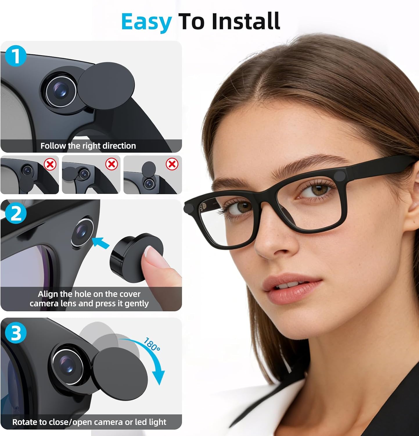 【Easy Snap-On Installation & Residue-Free Use】This meta camera cover installs in seconds by aligning and pressing firmly, with a stable snap-on structure that stays in place firmly. It will not scratch your glasses or leave sticky residue, and does not interfere with glasses charging or daily storage, providing a practical and reliable solution for your ray ban meta light cover use.