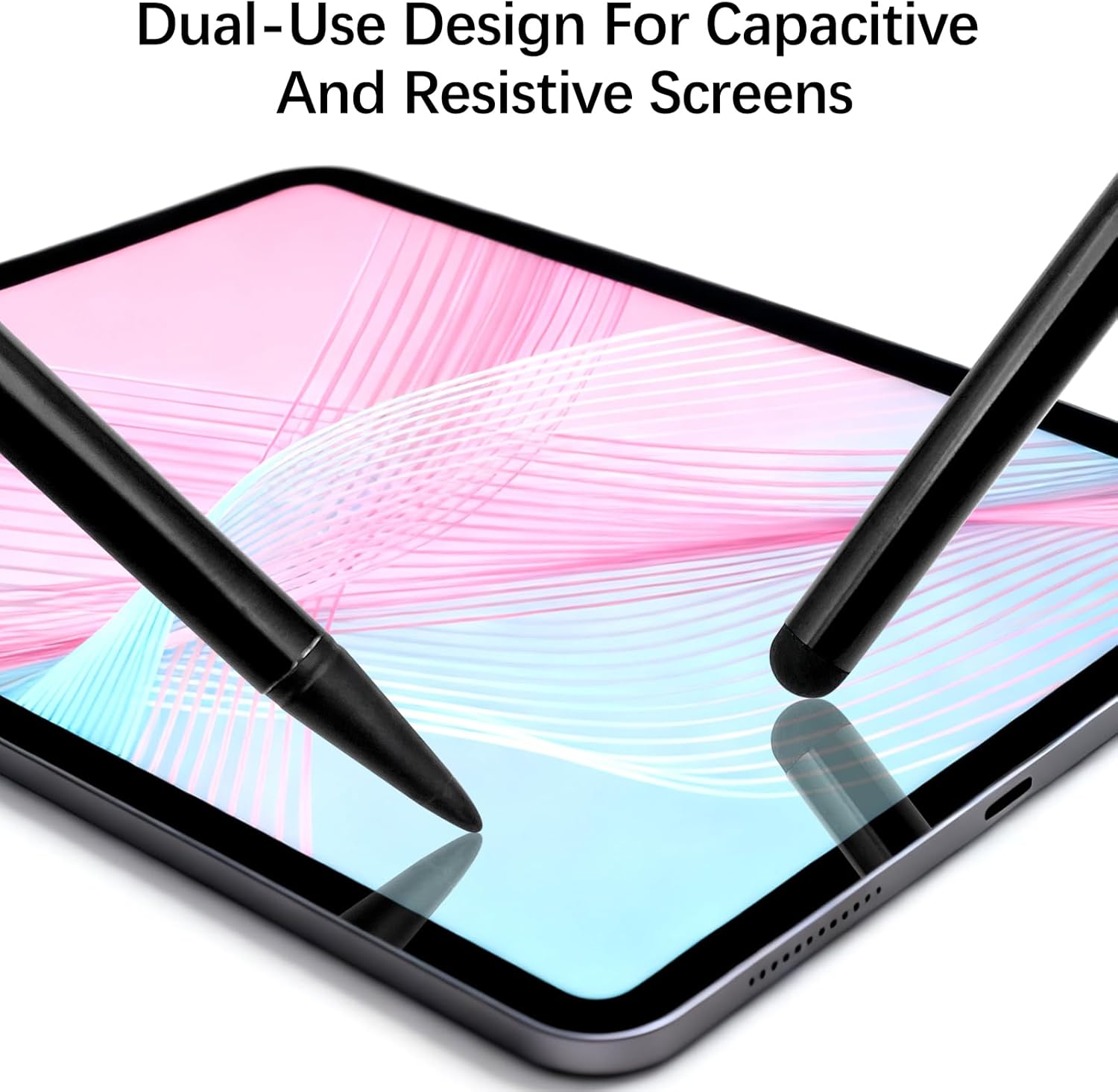 Dual-Tip Design: Each stylus pen features a soft silicone round head for capacitive screens and a hard plastic pointed tip for resistive devices, offering complete flexibility for multiple touchscreen types.
