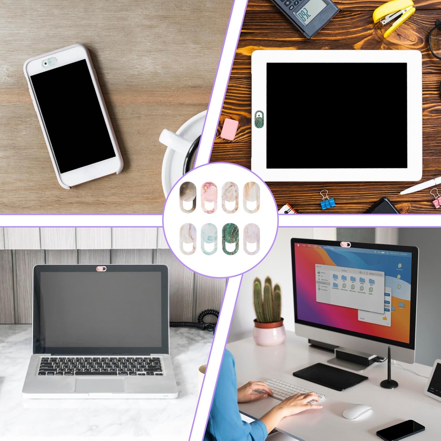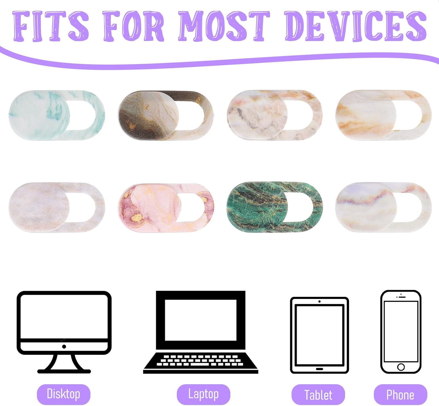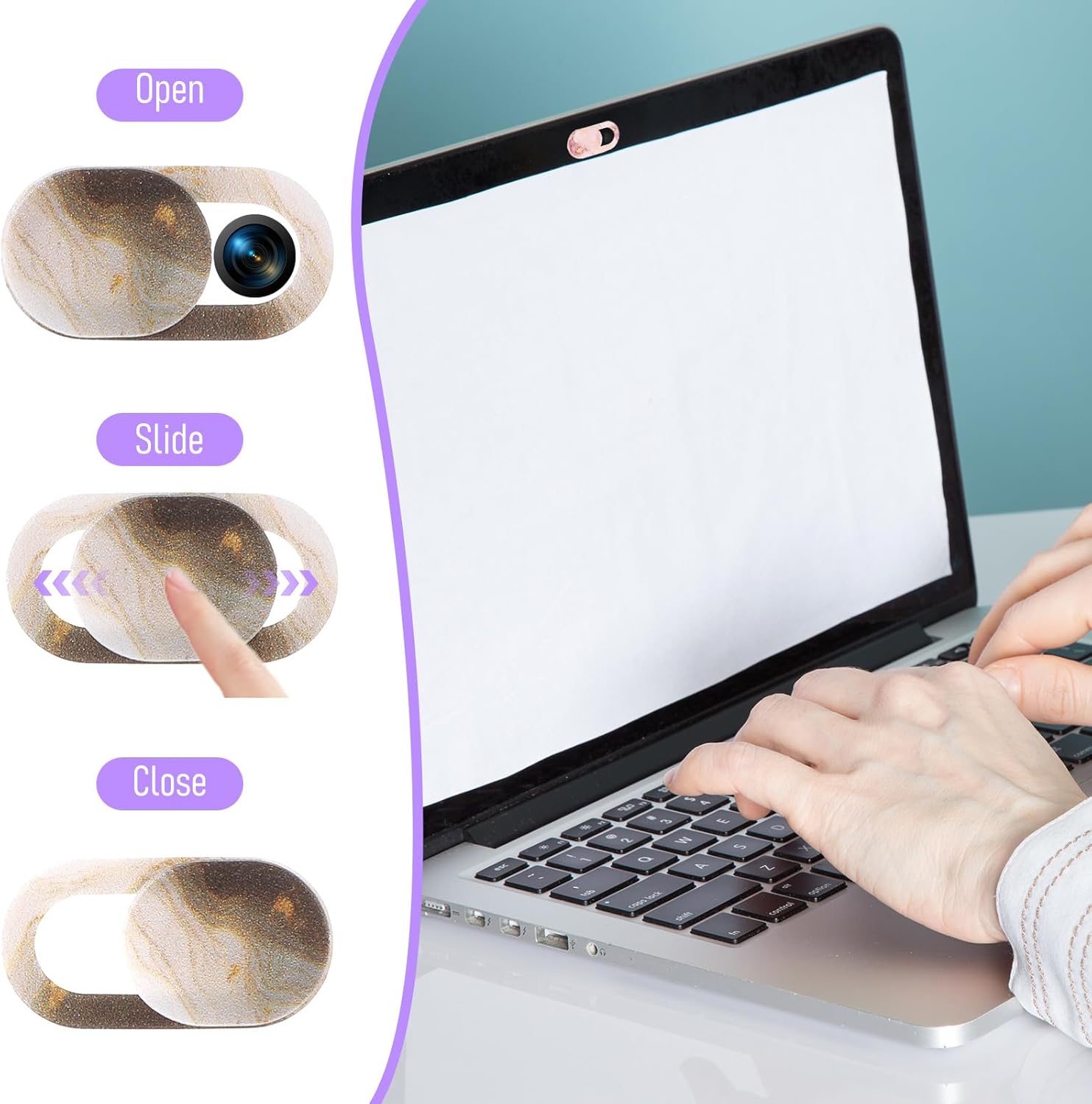 Unique pattern design: The design of our webcam cover is ingenious. Its surface features exquisite marble patterns, each piece having a unique texture, just like natural stone, with smooth textures and rich color gradations, resembling a natural work of art. This unique design not only effectively protects your privacy but also enhances the overall aesthetic appeal of the product, allowing you to enjoy security while also experiencing visual pleasure