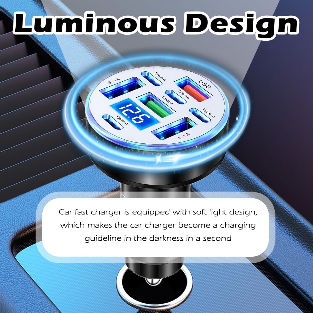 Luminous Design: Car fast charger is equipped with soft light design, which makes the car charger become a charging guideline in the darkness in a second, and the flexible light can clearly outline the car charger panel, which makes the charging action smooth and easy