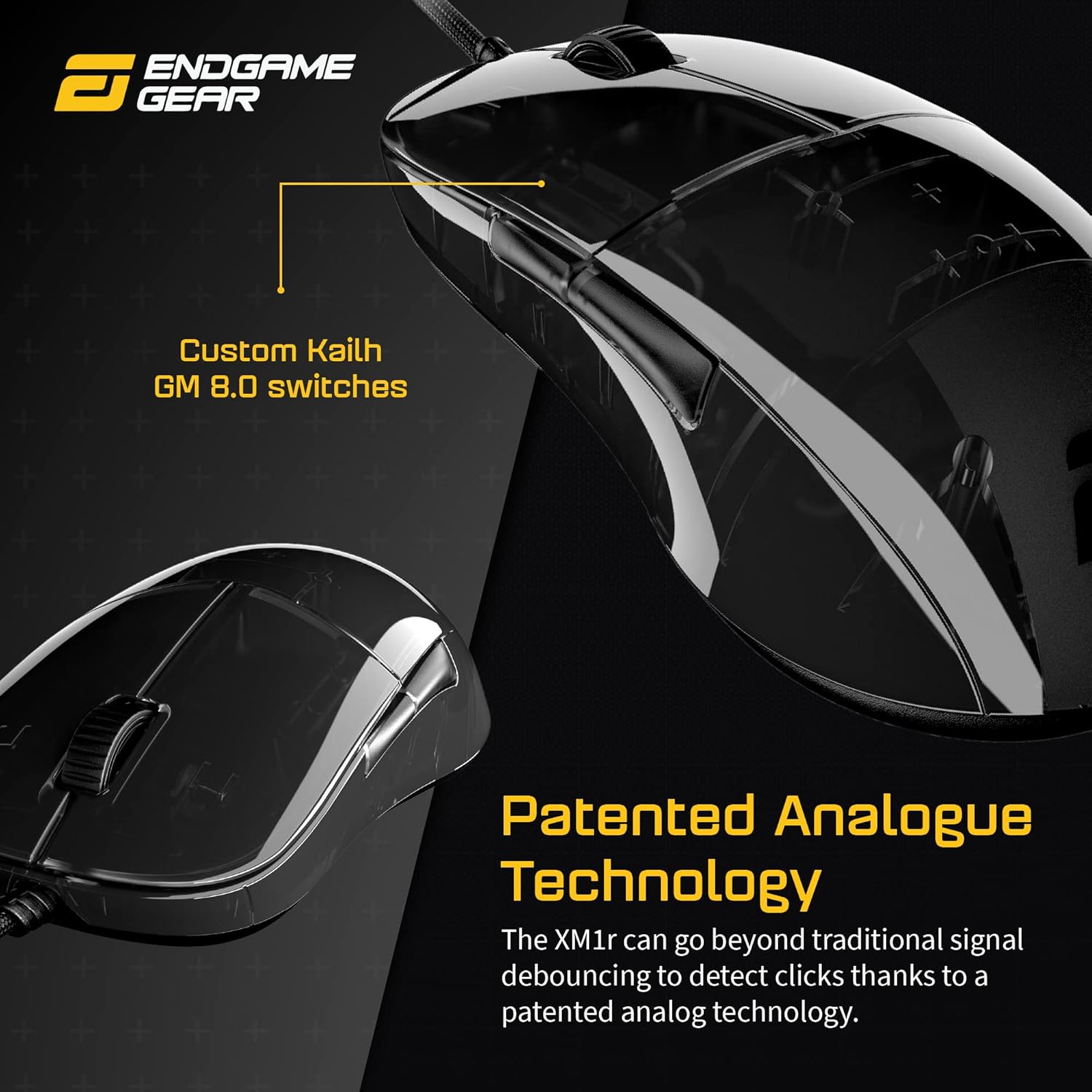 COMPETITIVE GAMING MOUSE: The key to success is in your hand —literally—with ENDGAME GEAR’s new and improved XM1r Gaming Mouse! Its 5 buttons, low latency, and high DPI combine to elevate your game performance. The anti-sweat coating and light weight further strengthen this ergonomic gaming mouse.