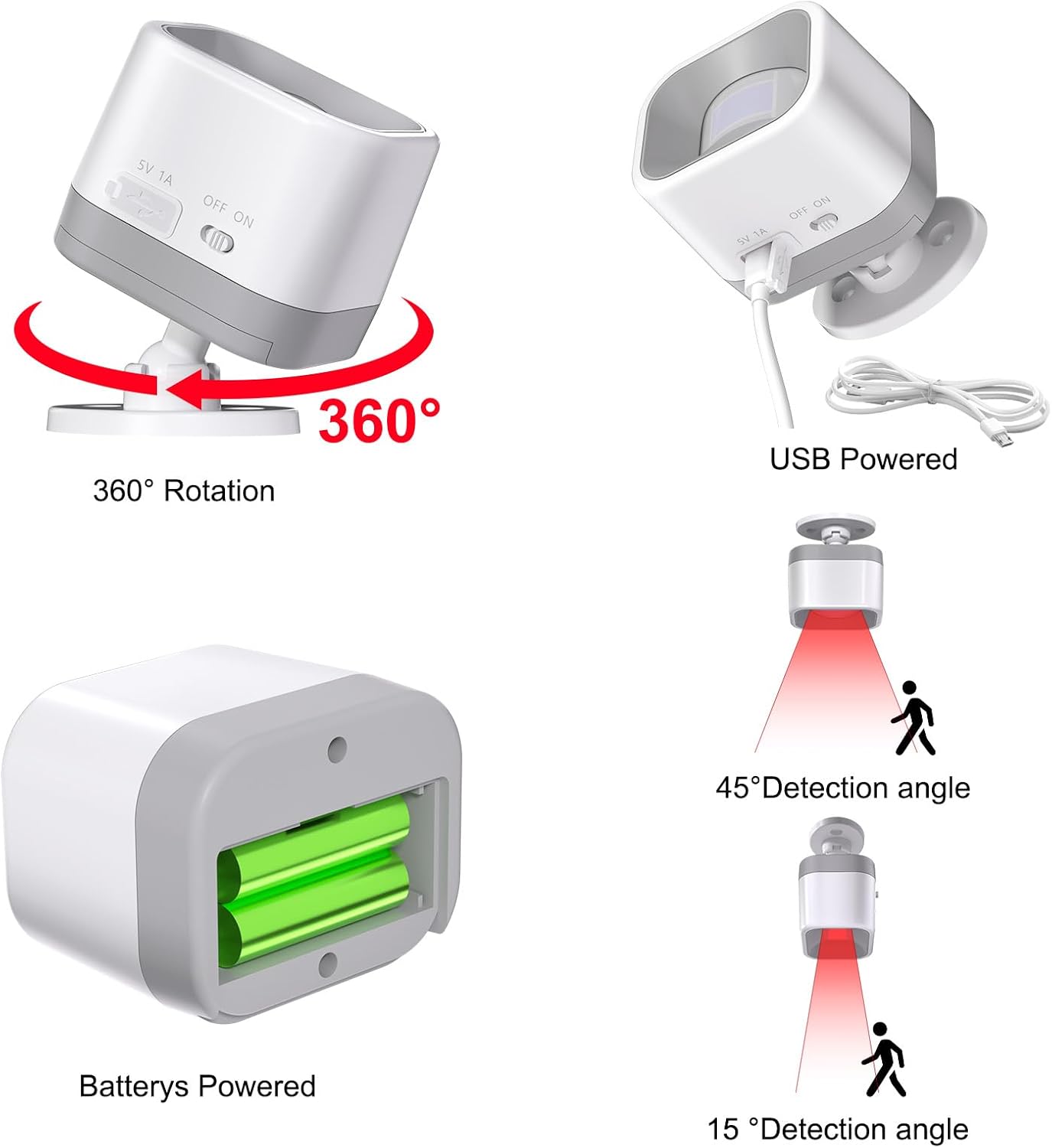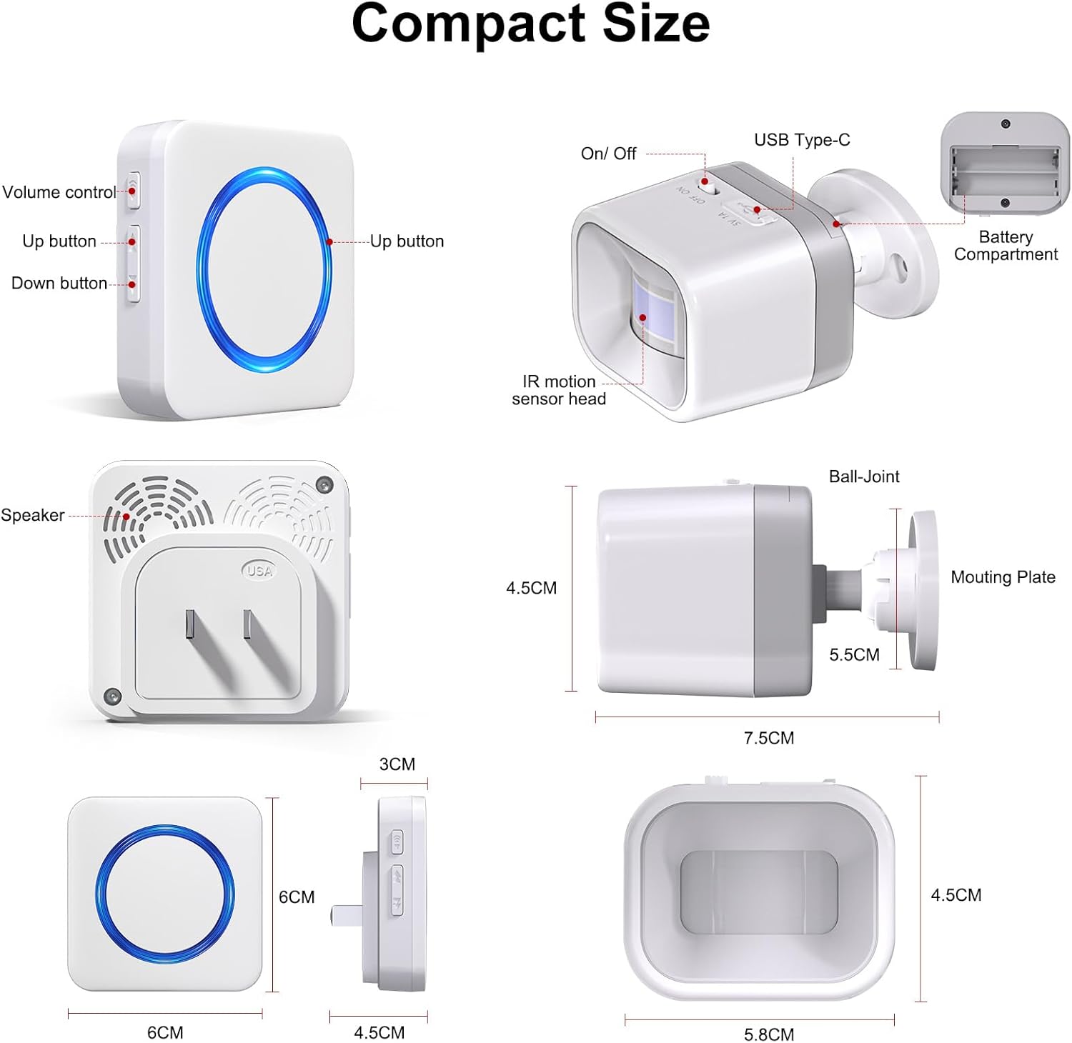 【3-MIN PLUG-AND-PLAY SETUP & WARRANTY】Includes 1 plug-in receiver and 1 motion sensor with 2 AAA batteries pre-installed. Every unit is safety-tested; enjoy lifetime tech support and free replacement—just email your order number