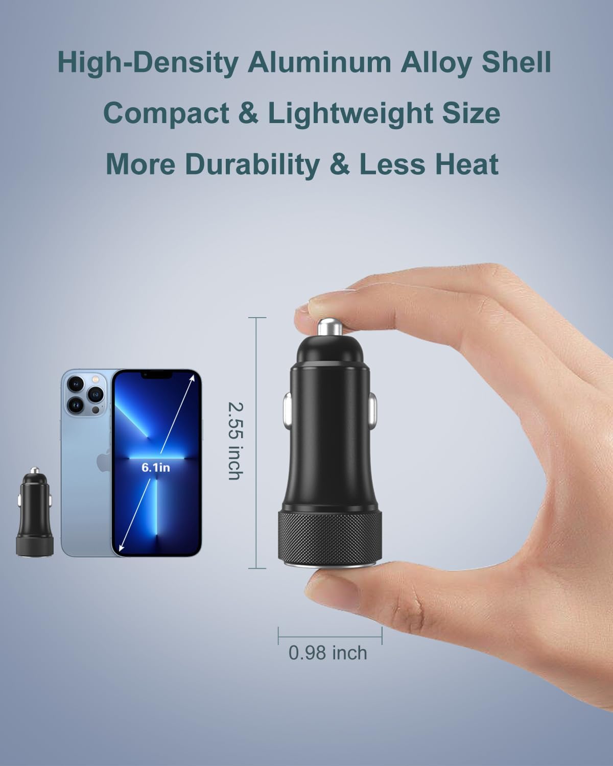 【USB C Cigarette Lighter Car Charger】: Lightweight and portable size is perfect fit in most car cigarette lighter. Besides, premium aluminum alloy exterior provides better scratch resistant and less heat performances, come with an external gently but not dazzling LED light that helps you charge easily at night or in the dark.
