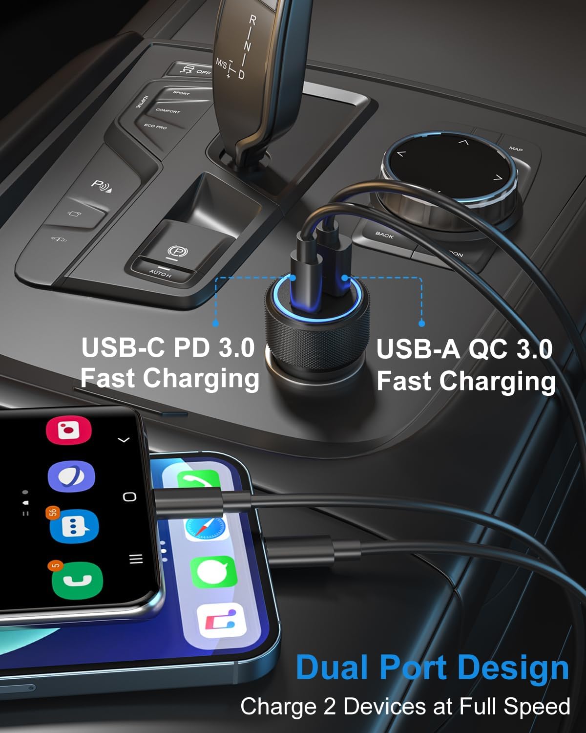 【Safe & Reliable Car Charger Adapter】: Intelligent circuit system provides more protection for your devices, such as protect against extreme working condition (like over-charging/over-current/over-heating), and automatic stop charging when power is full.