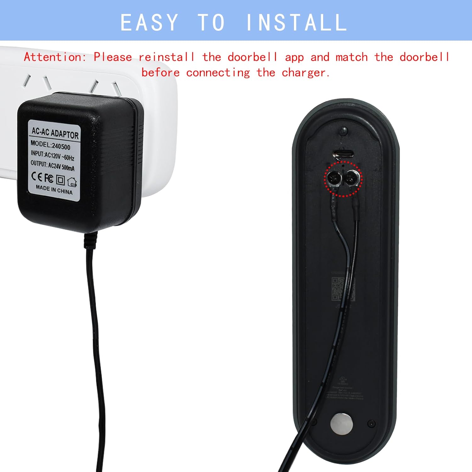【 Compatible Doorbells 】: The 24 Volt transformer is compatible with Google Nest, Wyze, ring battery doorbell,Eufy Video Doorbells,Wyze duo cam doorbell,aosu doorbell,smart video doorbell,xtu doorbell etc. and most doorbells. Attention: Please reinstall the doorbell app and match the doorbell before connecting the charger
