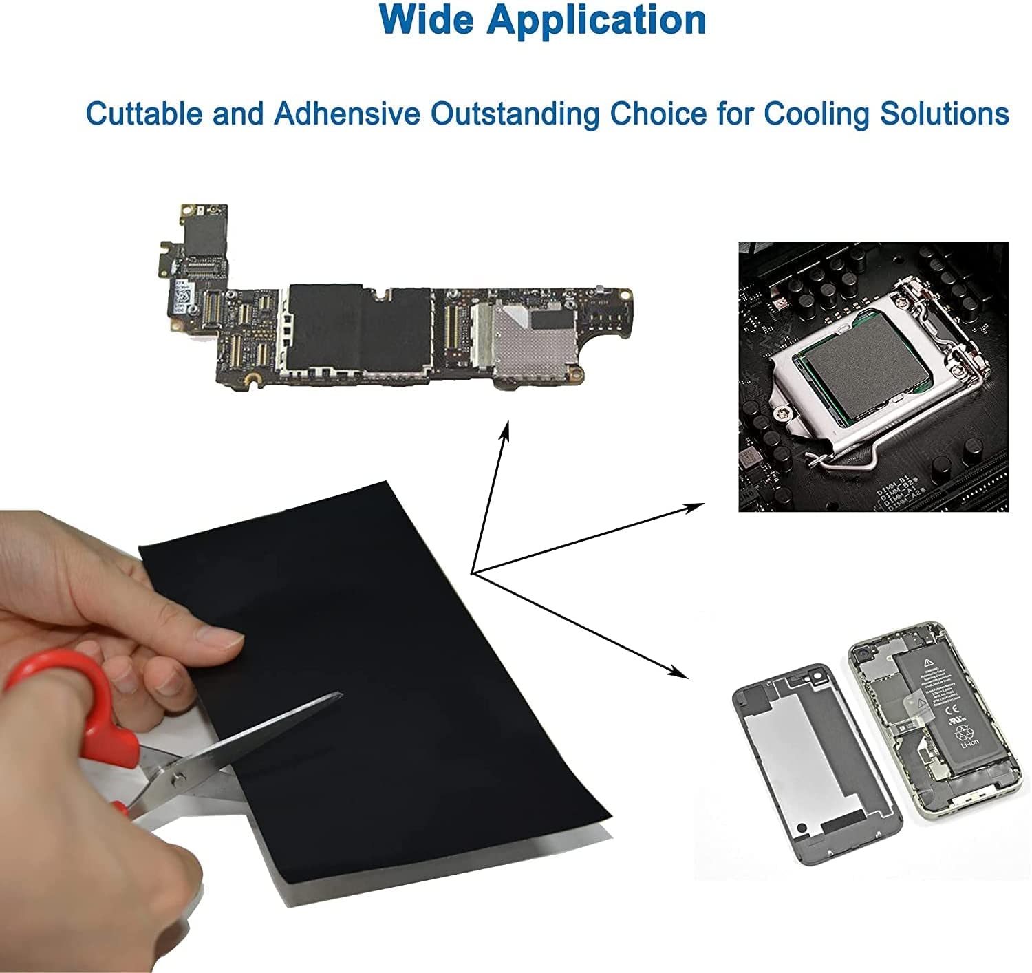 OUTSTANDING MATERIAL : This graphite Thermal pad is 100% pure graphite and non-toxic. It is a brand-new thermal and heat dissipation material that conducts heat uniformly in two directions, shielding heat sources and components to improve the performance of consumer electronic products