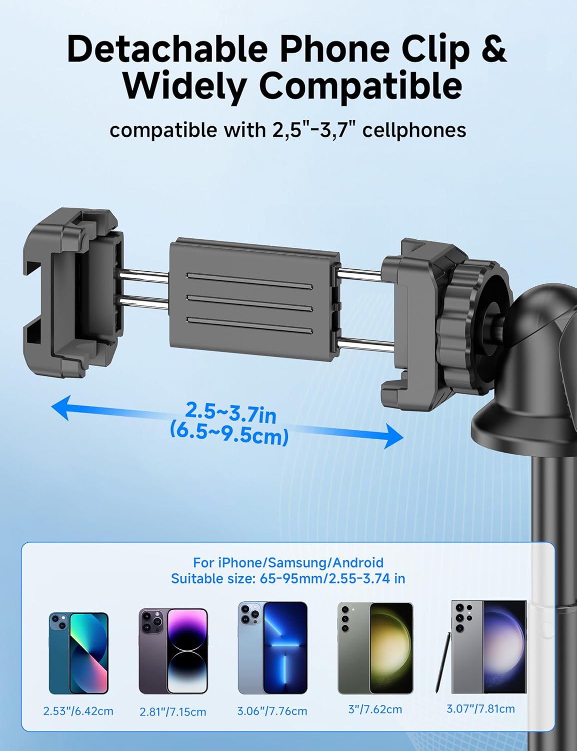 WIDE COMPATIBILITY: The phone clip can be detached and can be pulled on both sides, holder that can be adjusted to a width of 2.5-3.7″ (6.5-9.5 cm). And there is also a universal 1/4 ” screw and cold shoe that can be connected to most cameras, sports cameras, selfie light and gopro. Tripod mount for iPhone is suitable for the smartphones, such as iPhone 16/15/15 pro/14/14 pro/13/13 pro/12/12 mini/11 pro max/xr/x/8 plus/galaxy s10/s9/s8/p40/p30/mate 40/mate 30 and more