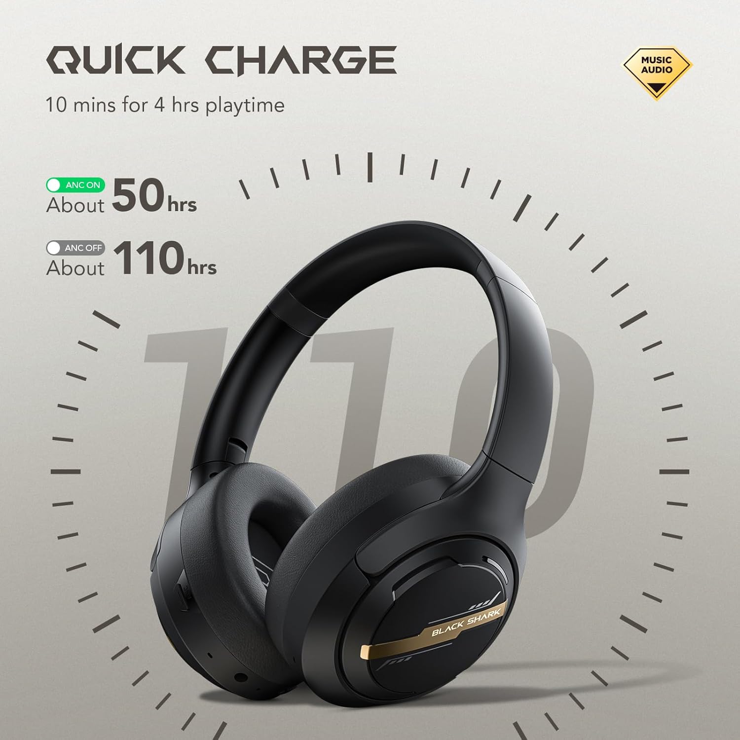 Black Shark JoyBuds Max Active Noise Cancelling Headphones, 50H Playtime Wireless Over Ear Headphones with Microphone, Bluetooth 5.4 Gaming Headsets Comfort Fit Ear Cups, 6EQ Modes via APP (Black)