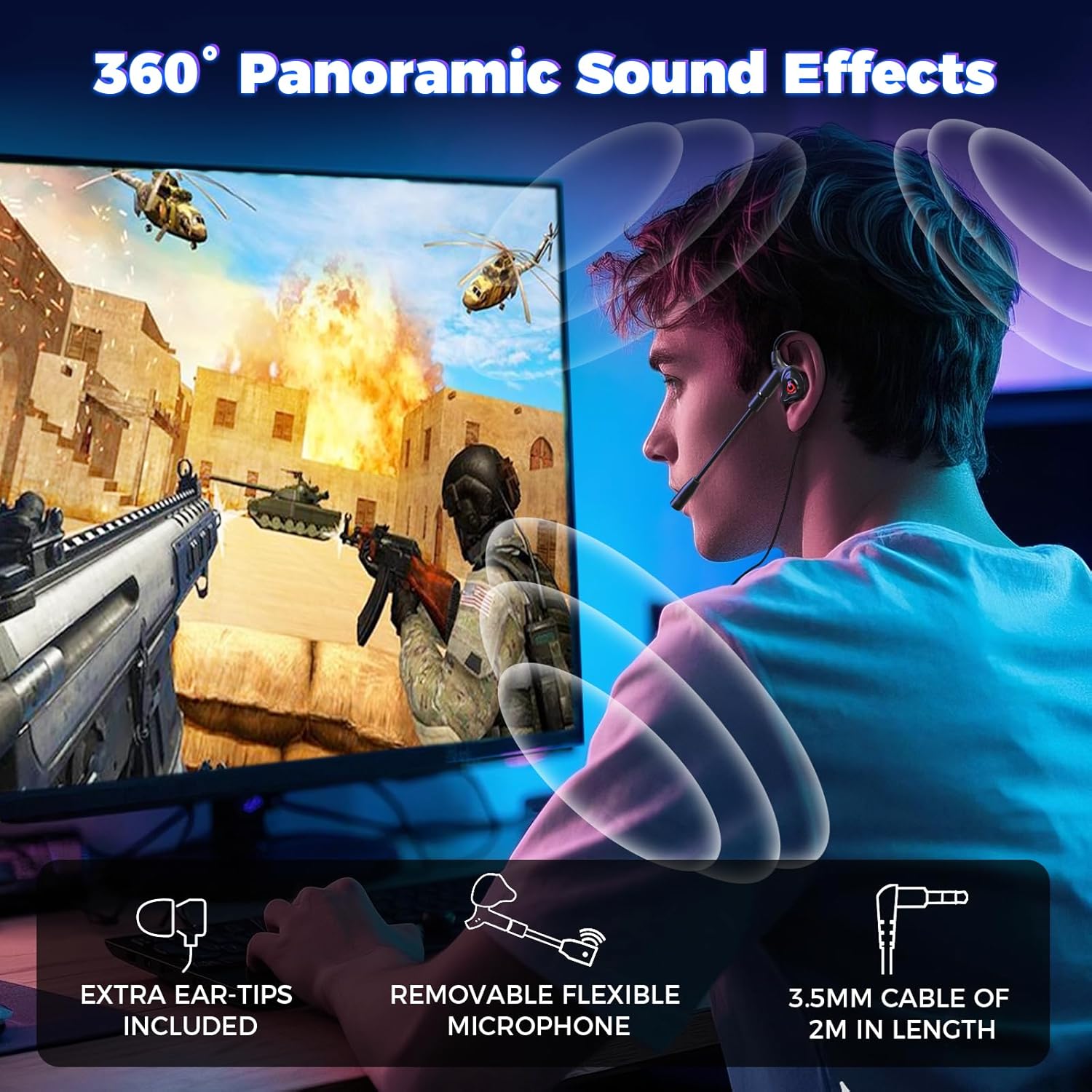 Professional Audio Performance:Equipped with a 10mm custom dynamic driver and a 16-ohm low impedance design, this headset delivers Hi-Fi immersive bass and accurate sound reproduction—perfect for replicating gunshots, footsteps, and ambient game sounds.
