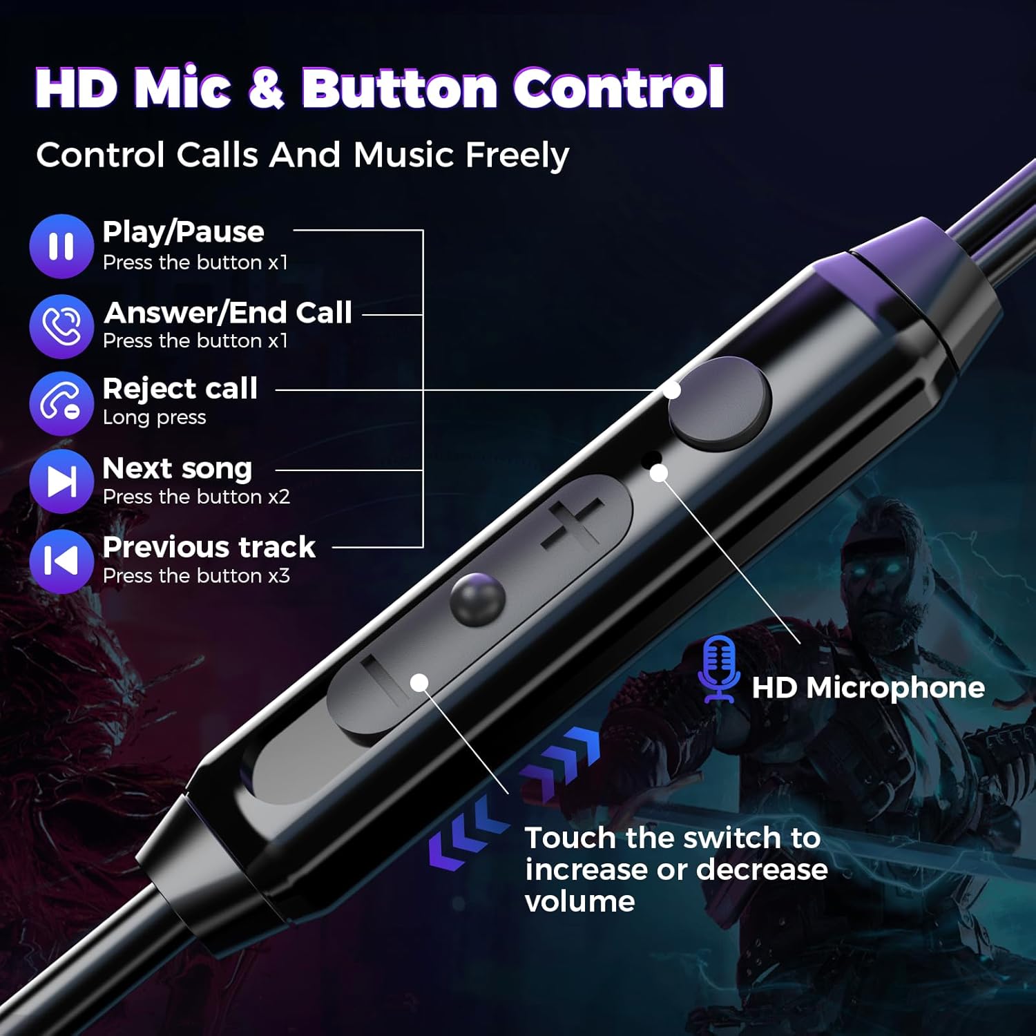 Manage your music and calls effortlessly with multifunctional, conveniently placed control buttons. Adjust volume, navigate tracks, and answer calls seamlessly right from your earbud.