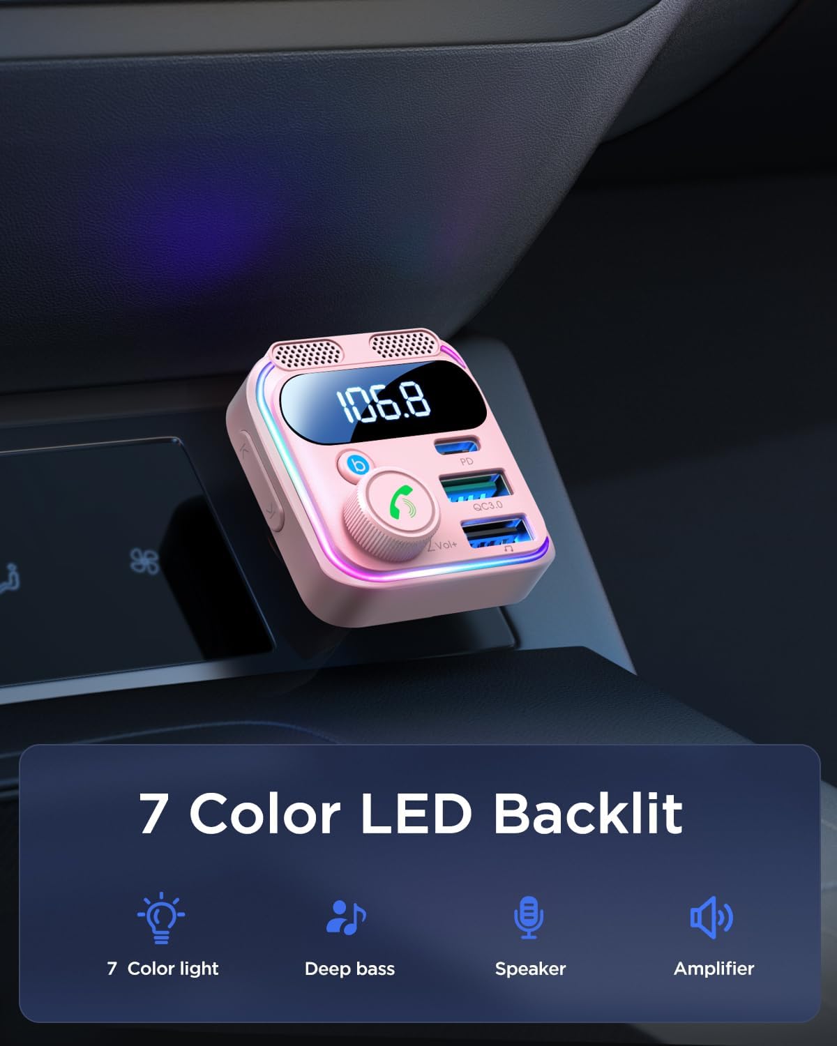 LED Light Bar & LED Indicator: This bluetooth transmitter uses 7-color LED light bar, which makes it easier to find the transmitter faster when driving at night (the light can be turned off). At the same time, it is equipped with an LED indicator that automatically detects the voltage when starting