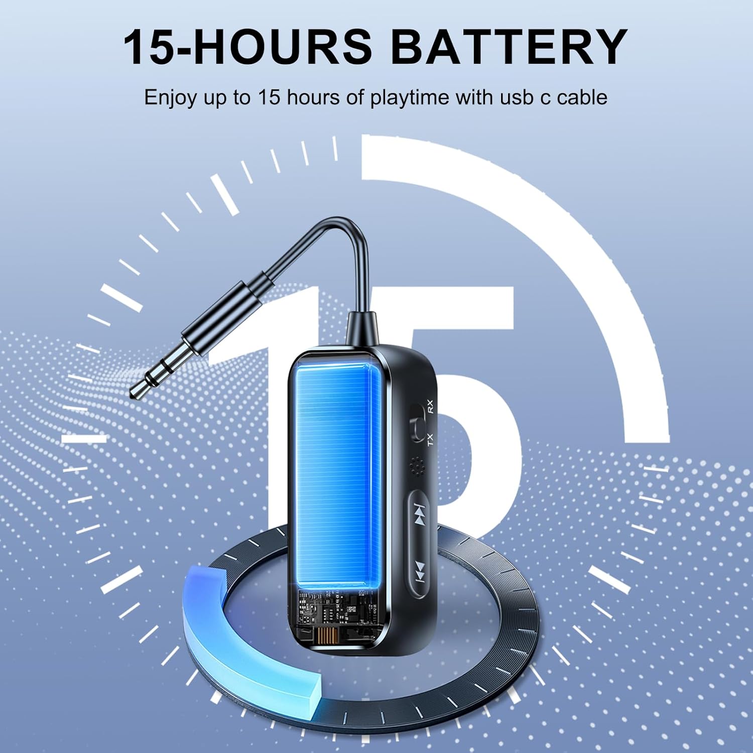 Bluetooth 5.4 Transmitter Receiver, 2-in-1 Wierless Audio Adapter with 3.5mm Aux Jack for TV, PC,Airplane, Cars, Home Stereo|HD Audio&Low Latency | Handsfree Calls |15H Battery Life