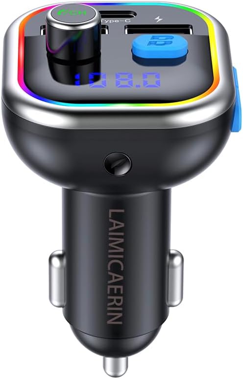 【Bluetooth V5.3 & Handsfree Car Kit】 With an advanced Bluetooth V5.3 chip, this FM transmitter Bluetooth provides faster pairing and more stable sound than others
