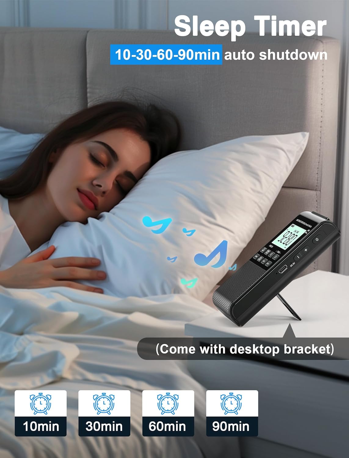 🔊【5W Powerful Stereo Sound + 6 Custom EQ Modes】Experience rich, room-filling audio with a 5W high-fidelity speaker and dual bass diaphragms. This bluetooth pocket radio delivers stereo sound with deep lows and clear highs. Customize your listening with 6 EQ modes (Pop, Rock, Jazz, Classic, Vocal, Flat) to match any genre. Whether you’re tuning into talk radio or streaming music, the dynamic performance rivals larger speakers.