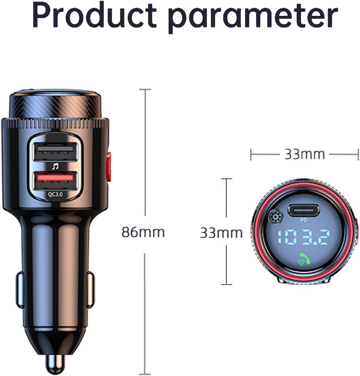 【Dual-Port Fast Charging】Our Bluetooth car adapter is equipped with a Type-C PD 30W port and a QC 3.0 port. This FM transmitter supports simultaneous charging of two devices, with a total power output of up to 48W, charging 80% faster than standard chargers. It also features built-in overcurrent, overvoltage, temperature control, and short-circuit protection functions to ensure charging safety