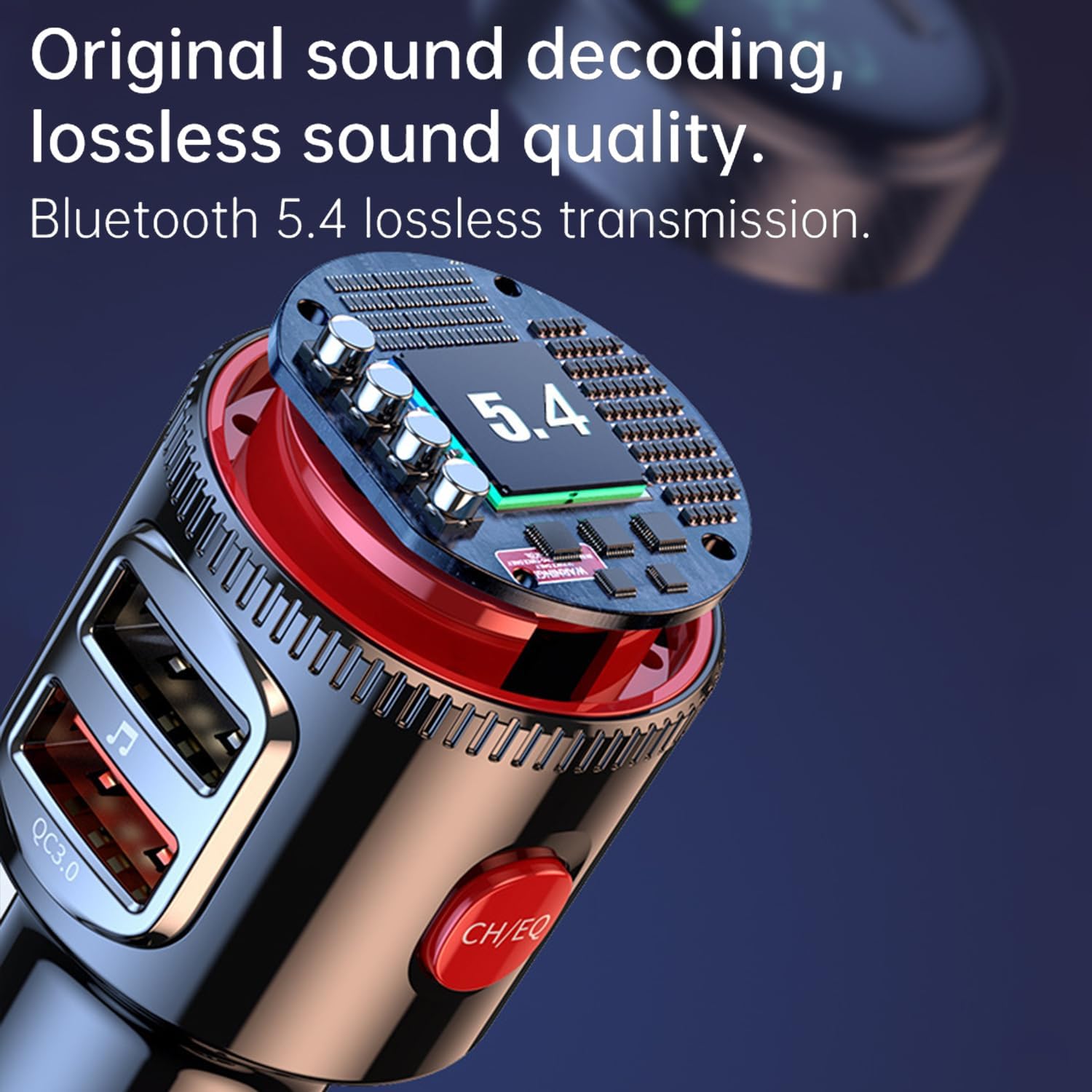 【Excellent Sound Quality】Our Bluetooth FM transmitter activates deep bass and immersive stereo sound by pressing the ‘EQ’ button, enhancing music dynamics and clarity. High-fidelity audio quality combined with noise cancellation (CVC) technology and echo cancellation provides a smooth hands-free calling experience and stable music streaming services
