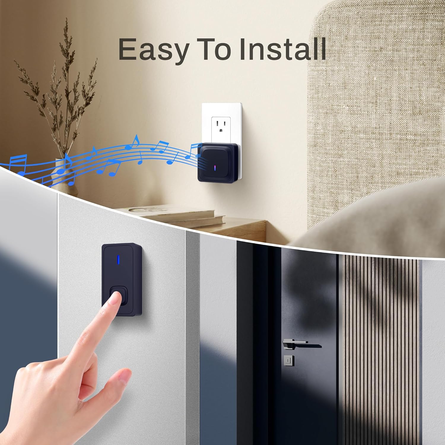 【🎵 300M/1000Ft Long Wireless Range】:This doorbell with1000 ft wireless range, Whether you are in a room or kitchen, you will clearly hear the houses wireless doorbells chimes when someone presses it, ensuring you can never miss deliveries or visitors anymore.
