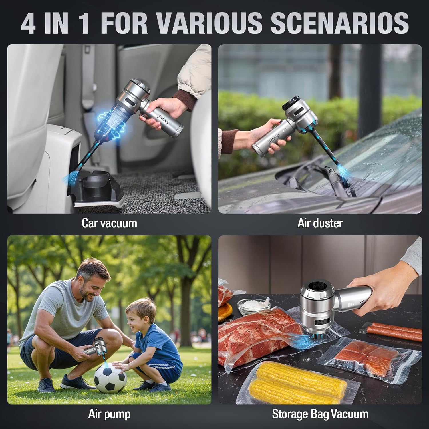 Versatile Attachments: This 4 IN 1 cordless mini vacuum cleaner for car and home is equipped with multiple attachments, including a crevice tool and brush nozzle. Easily tackle all surfaces, from upholstery to hard-to-reach areas, and customize your cleaning for maximum efficiency.