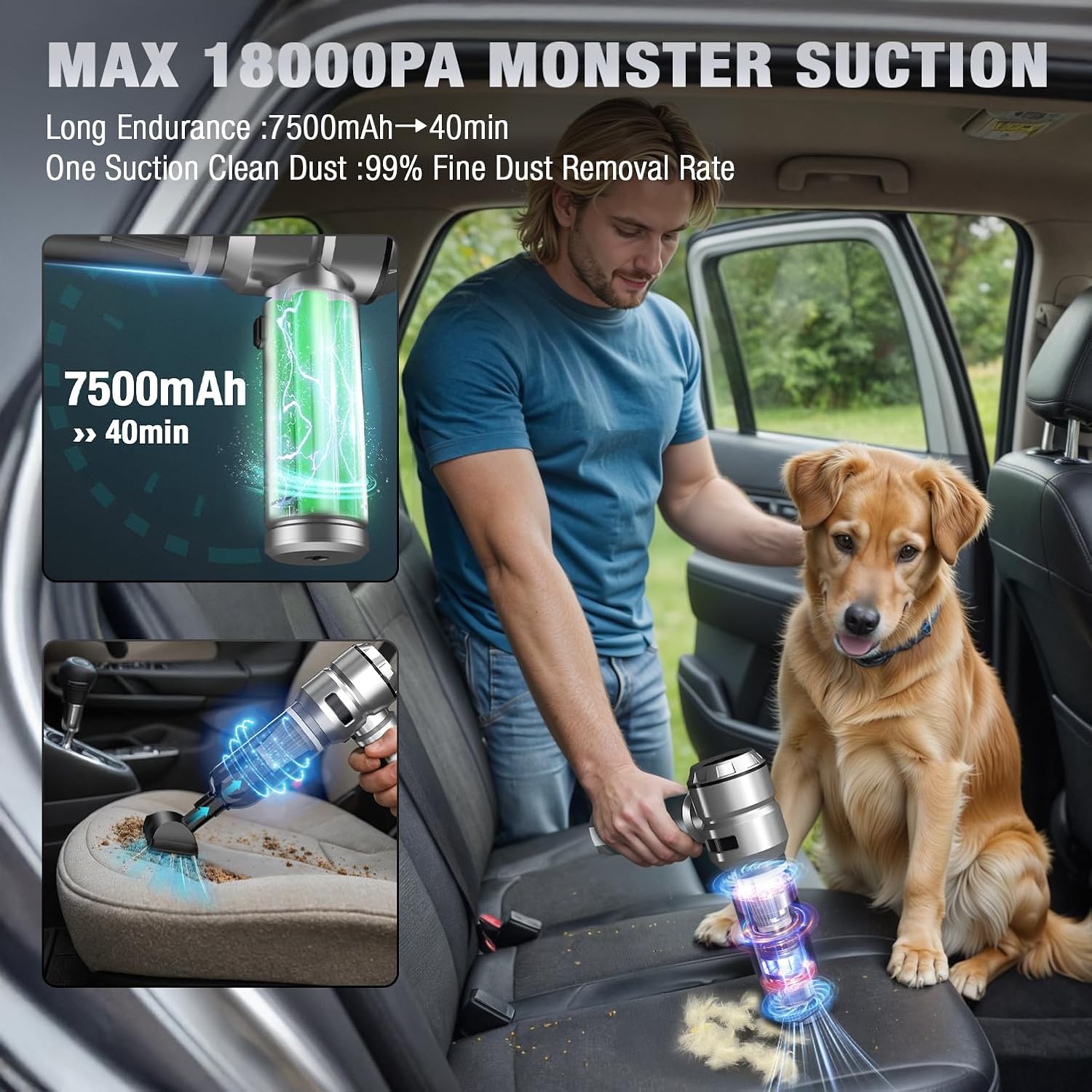 Powerful Suction: Our car vacuum portable cordless features a high-performance motor that delivers strong suction, efficiently picking up dirt, crumbs, and debris from every corner of your vehicle. Keep your car spotless with minimal effort