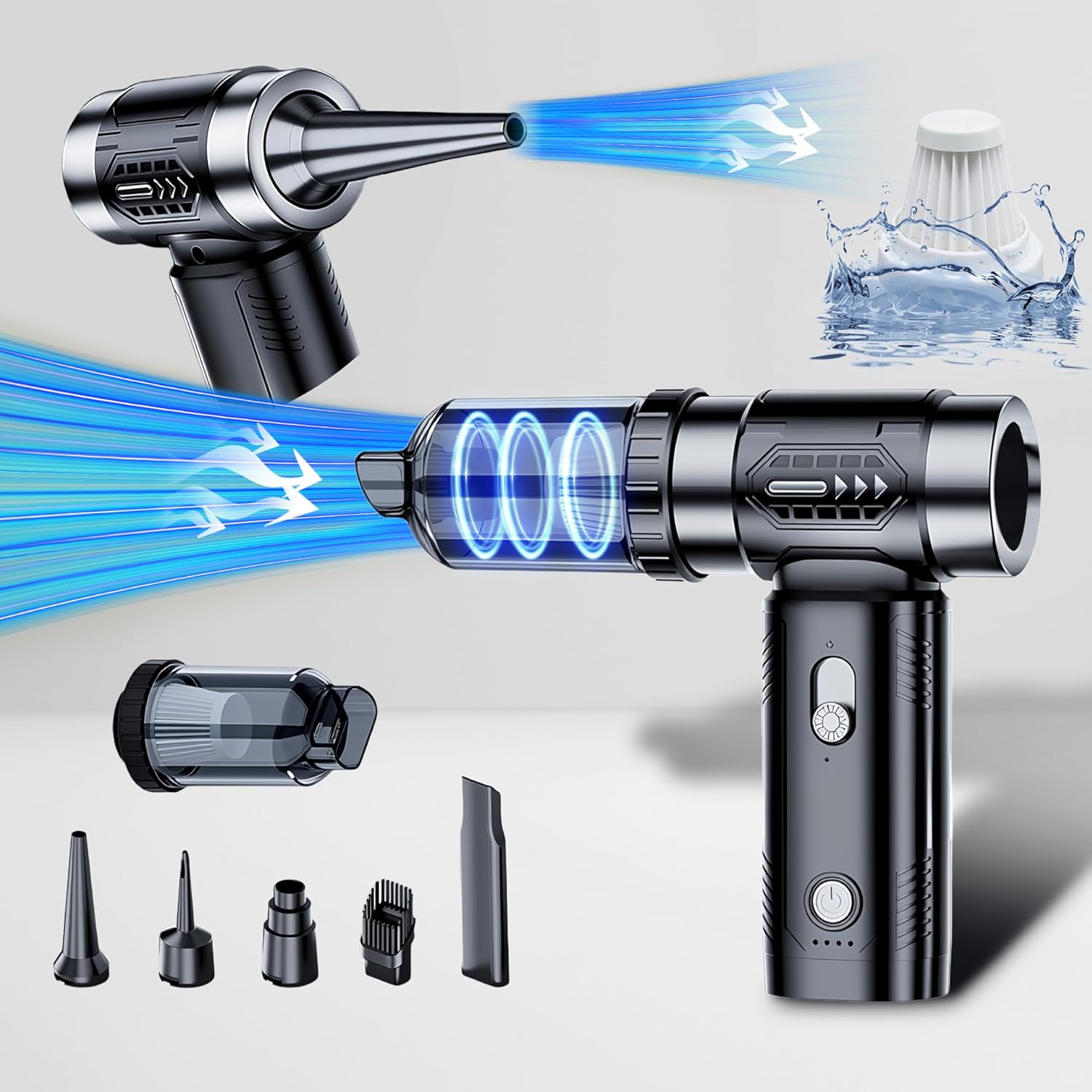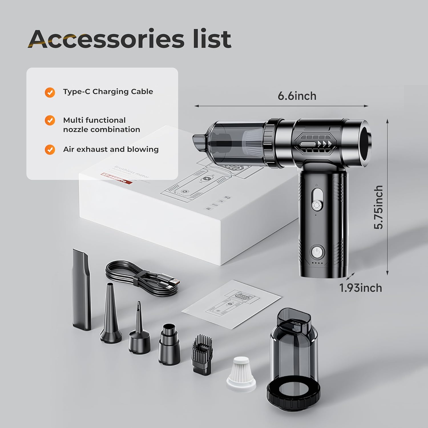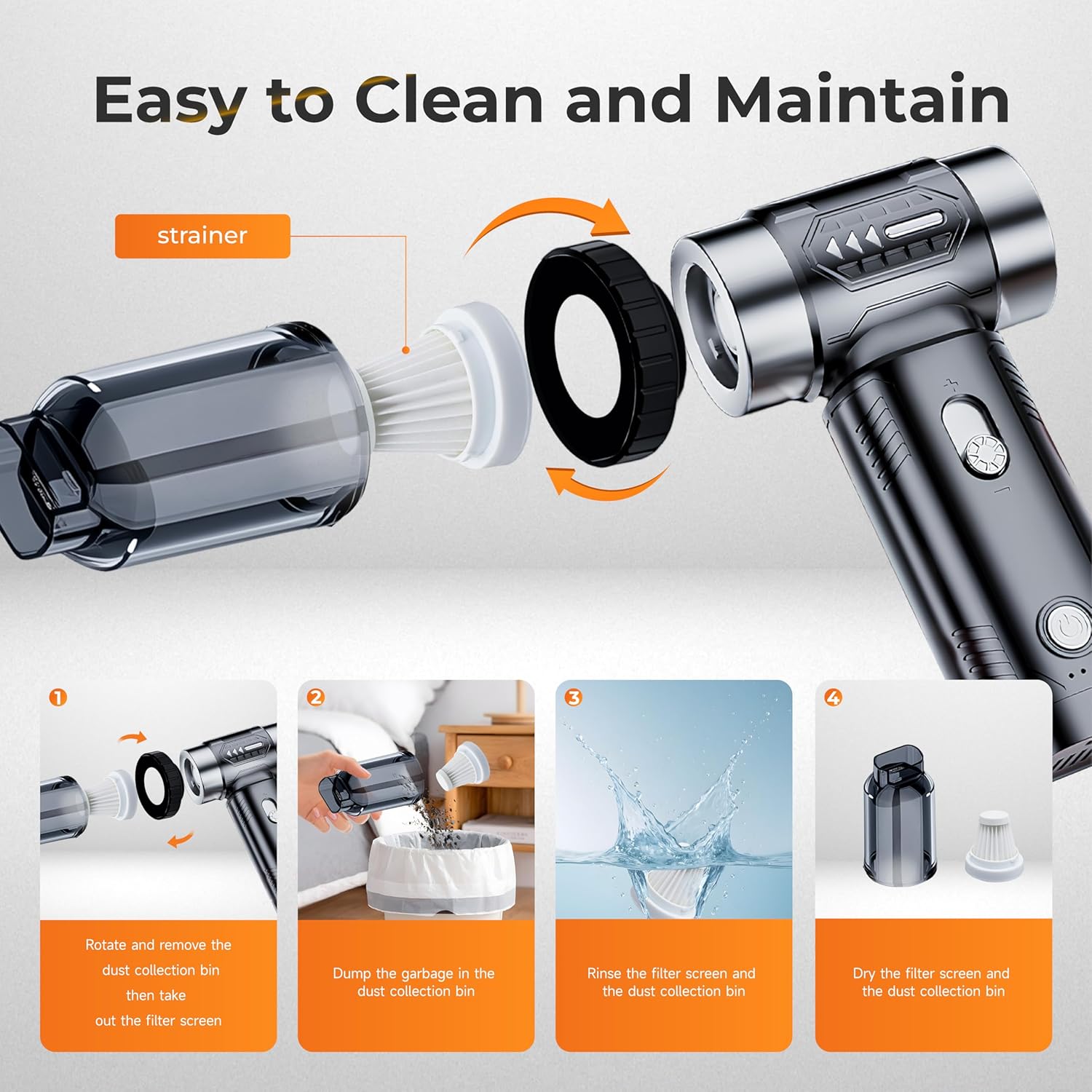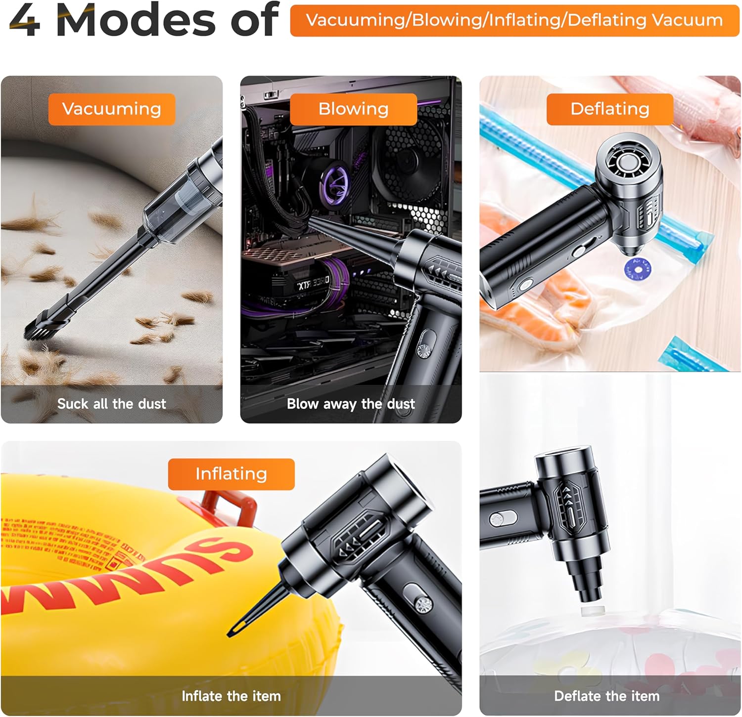 3-in-1 Multi-functional Design: Switch between Dust Buster, Air Blower, and Hand Pump modes.Vacuum up messes, blow away dust in tight spaces, or inflate air mattresses and pool toys, making it a versatile cleaning companion.