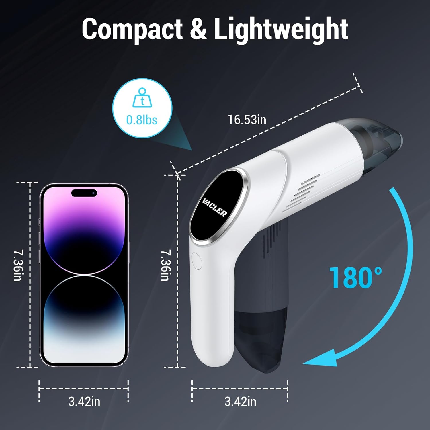 【Lightweight & Ergonomic Design】RFVUC car mini vacuum cleaner Weighs only 0.8lbs (lighter than a water bottle!) with an anti-slip handle for one-handed cleaning. Perfect for reaching tight corners, keyboards, curtains, and car interiors effortlessly – no more bulky vacuums! Convenience making it ideal for quick on-the-go cleaning in your car and home
