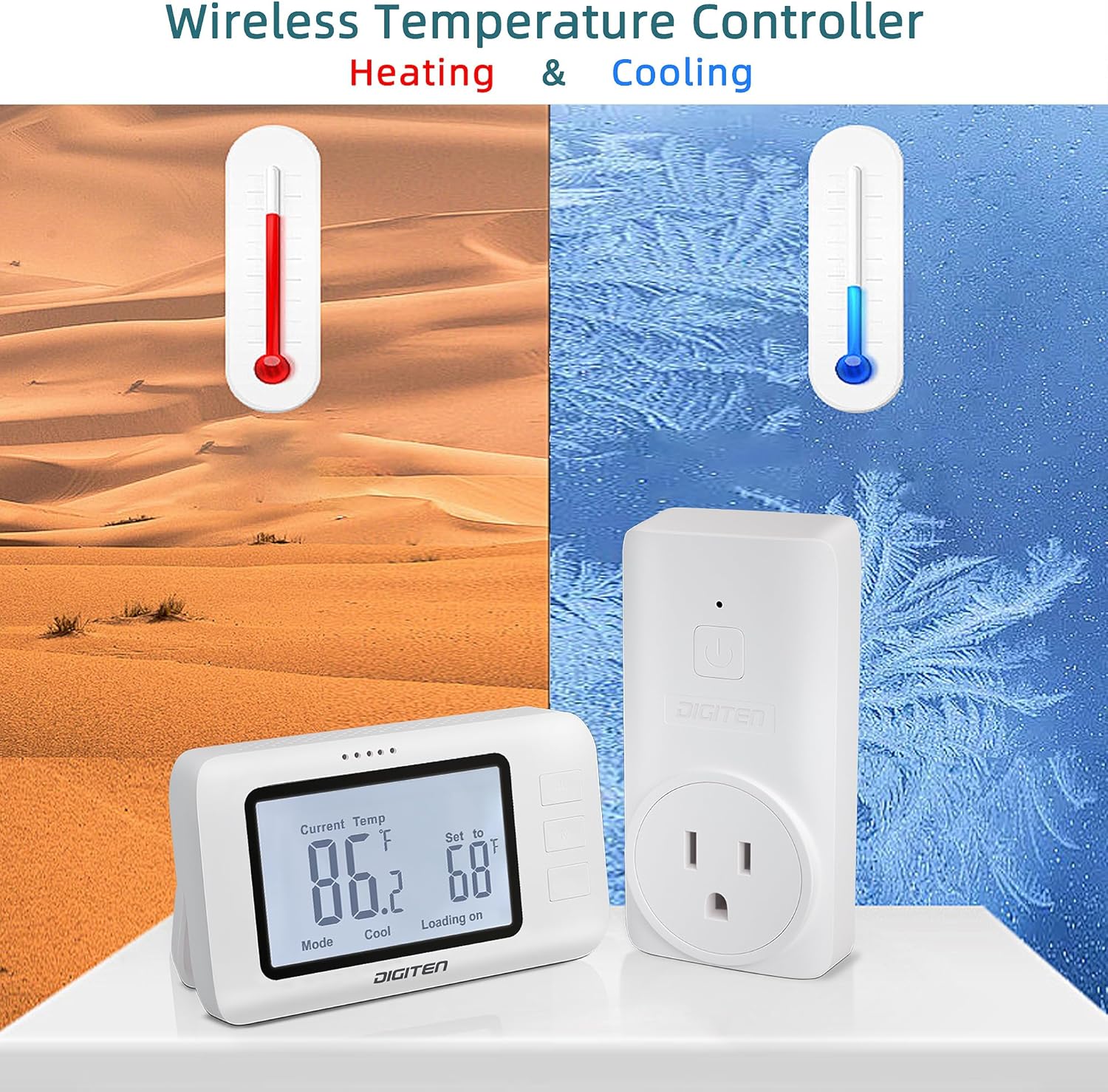 Remote Control Built-in Temp Sensor Thermostat: Equipped with a highly accurate temperature sensor, the remote controller automatically detects the temperature. Once the current temperature reaches the target level, the thermostat plug will cease heating or cooling, functioning effectively for receivers. Widely Used in heating and cooling mode to automatically control the activation and deactivation of devices based on your pre-set target temperature