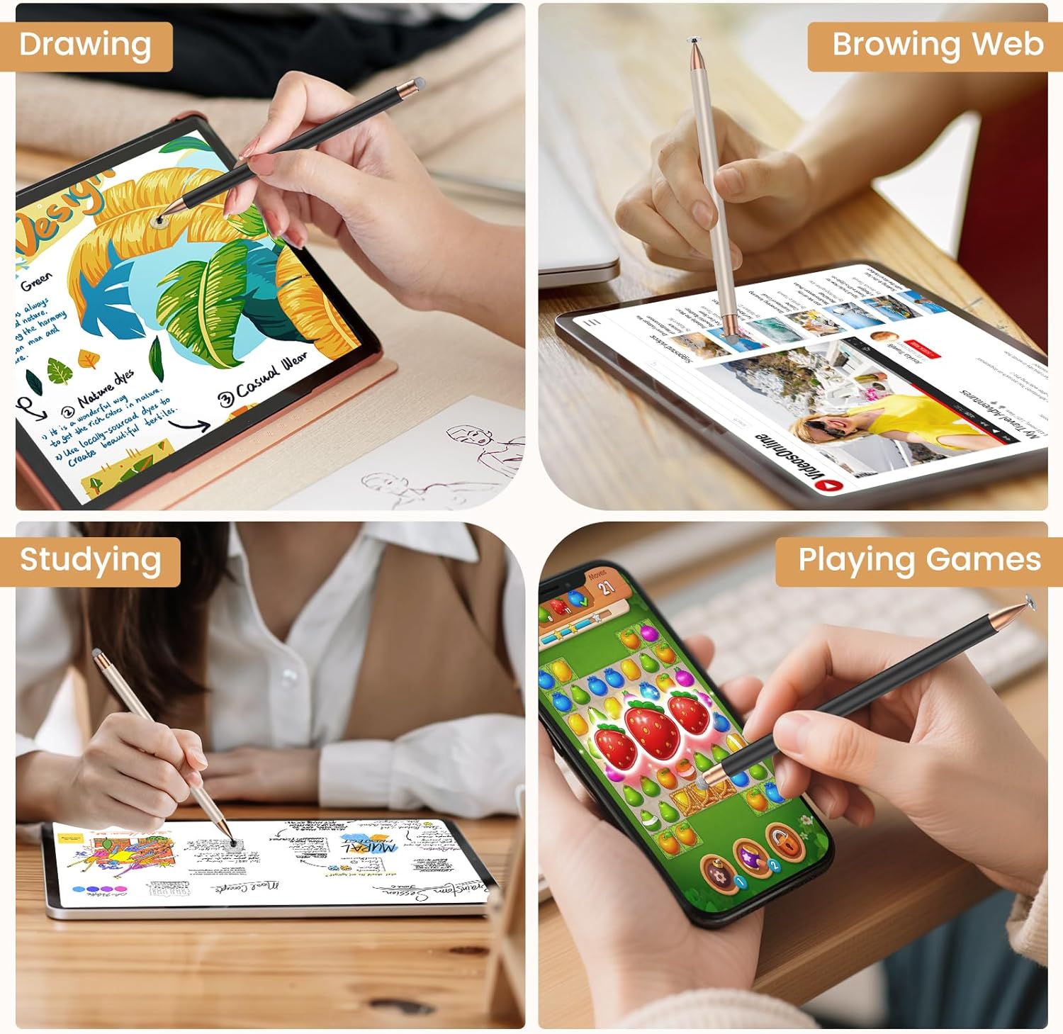 Stylus Pens for Touch Screens: This universal stylus pen is compatible with iPhone, iPad, Microsoft Surface, Smart Phones, Chromebook and all touchscreens, no Bluetooth connection or charging required. Simply pick it up and start writing or drawing.It’s efficient to use in class, adults working, and seniors navigating their devices