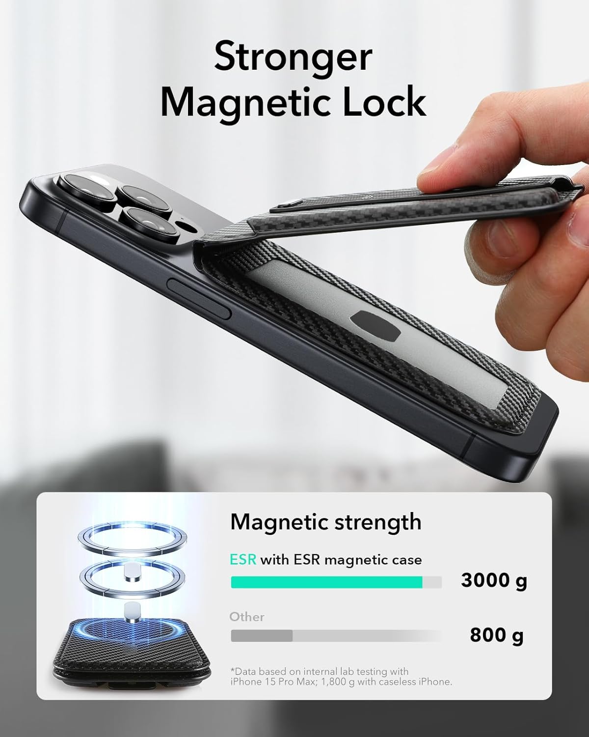 Upgraded Stronger Magnetic Lock: with 3,200 g of holding force (with ESR magnetic cases), it’s 275% stronger than the official magnetic wallet, ensuring a secure attachment for your wallet stand; not compatible with Find My