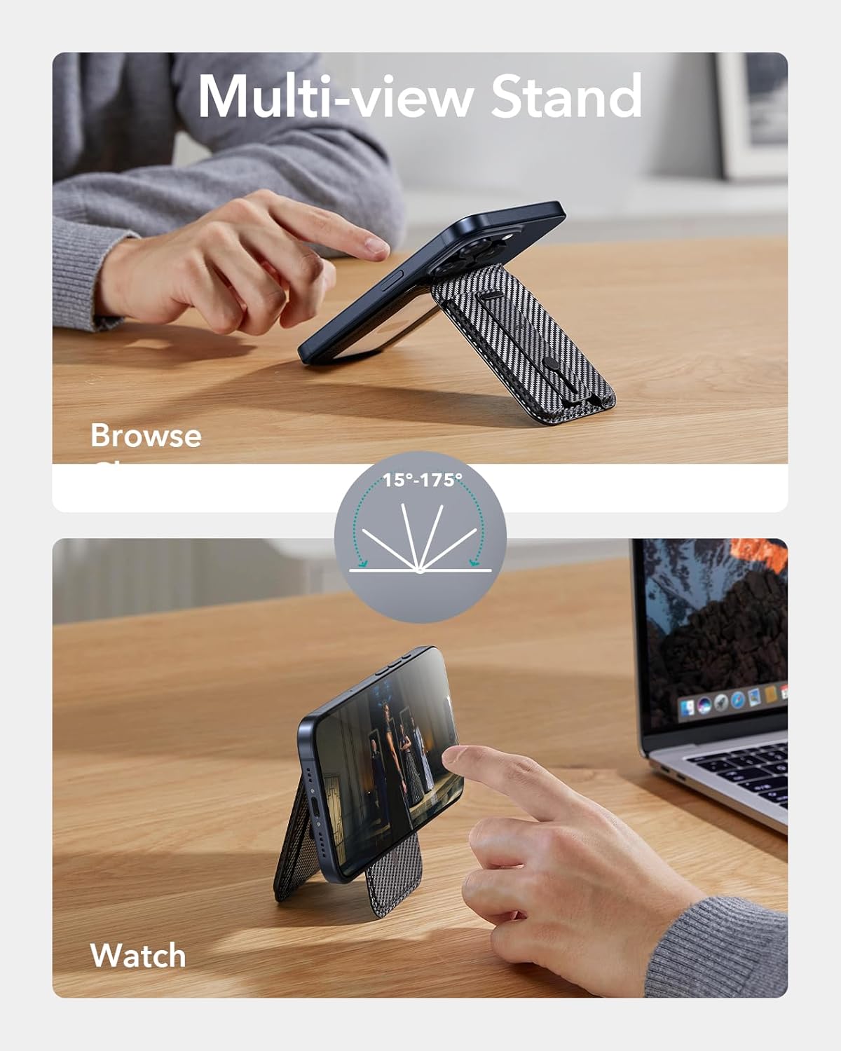 Adjustable Stand: choose from portrait or landscape at any angle between 15° and 175° to find the perfect position to watch your favorite shows, FaceTime, or browse