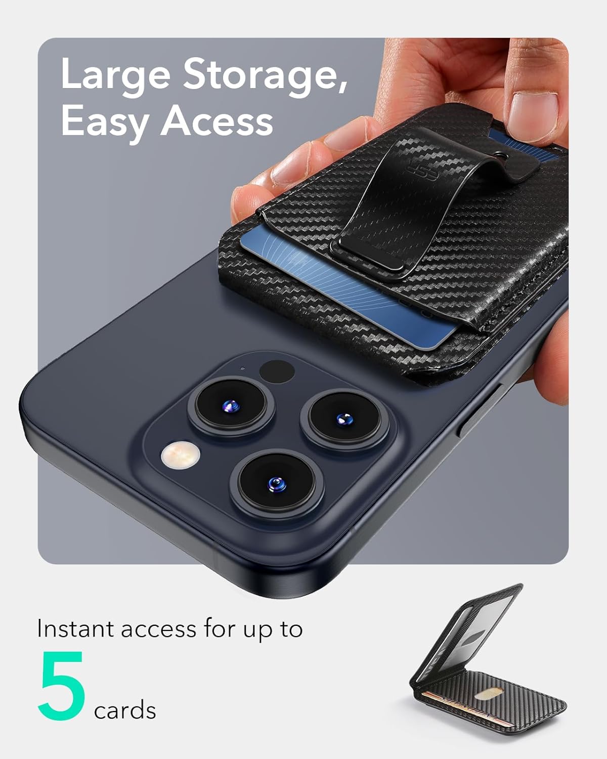 Smart Card Storage: can hold up to 5 cards with a clear ID window to give you quick and easy access to the card you need