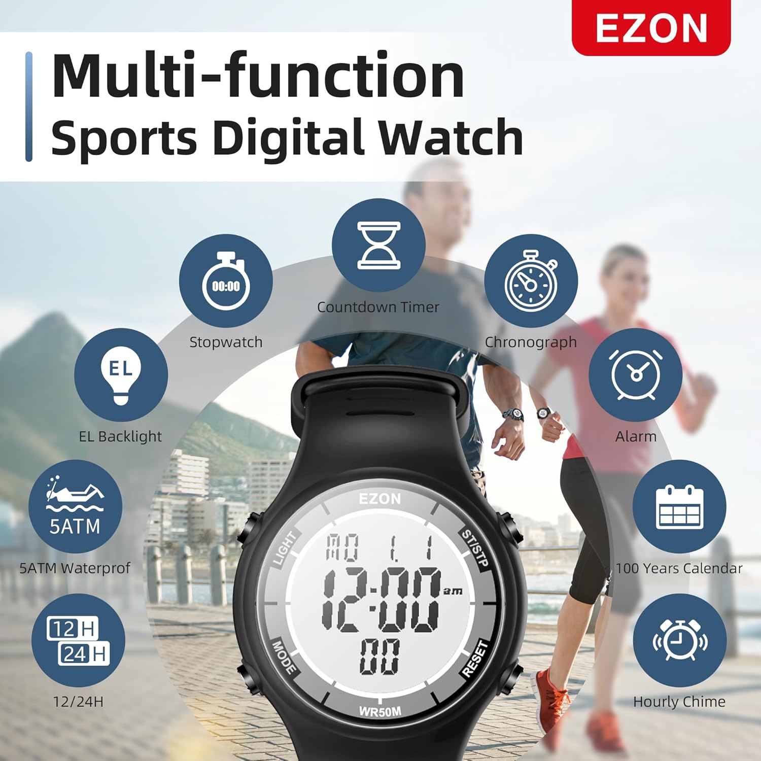 Practical & User-Friendly: Equipped with a large digital dial and EL backlight for easy reading even in low-light conditions. It includes essential functions such as 12/24-hour format, date, weekday display, calendar, alarm, hourly chime, stopwatch, and countdown timer, catering to both sports and daily life needs.