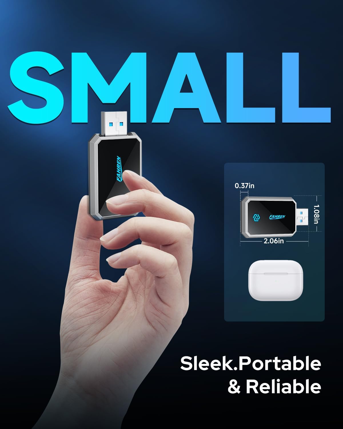 FAHREN Latest-Gen Wireless CarPlay Adapter,Bluetooth & WiFi Connection,Plug-N-Play,No Lag for Navigation,Compatible with iOS 10+ & Car 2017+,Mini Size with USB-A Extension Cable & Type-C Adapter